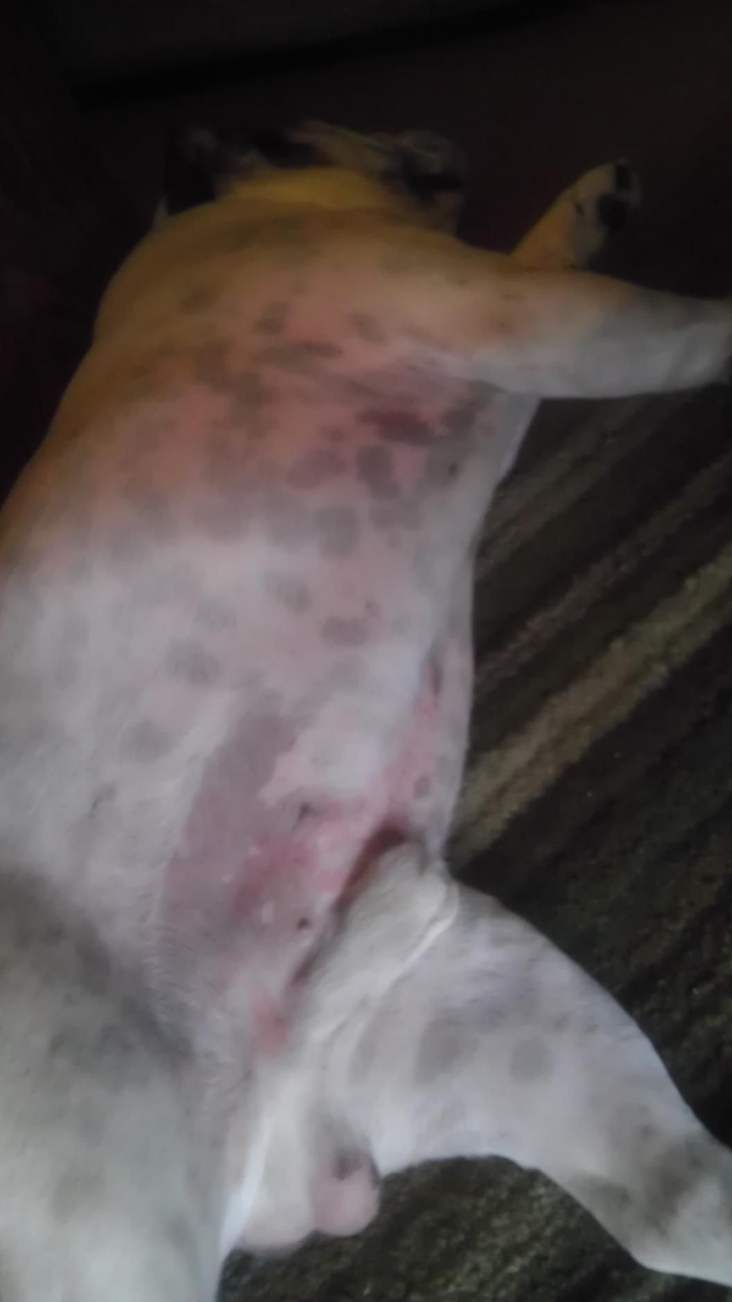 aw im glad hes better.He's doing better you can still see hives but they aren't bumped up anymore and he's now light pink so that's a lot better. He's pretty tired but benedryl usually makes him sleepy. Which in a way is good cause his hind leg has been bothering him so at least hes staying off of it... I've given him a good bath, a flea pill and rinsed my floors to get the Lysol off of them. I'm hoping it will clear up before I trade the husband places. Tomorrow evening I head to Chicago to sit with our youngest.