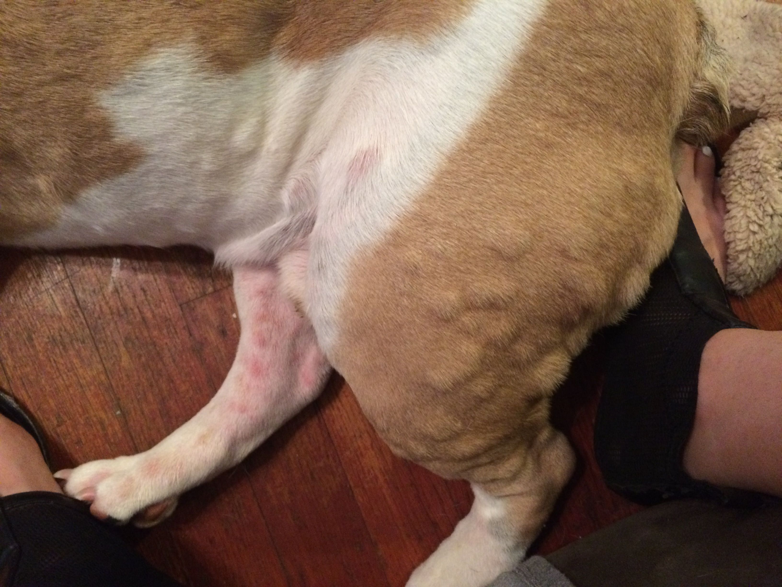 Currently dealing with this problem on my bully. He woke up today scratching so much, and then later in the afternoon he broke out. I'm worried because it seems to be spreading within just a day. He was out in some tall grass yesterday and not sure if he hit a bad patch or found some ants? I gave him a Benadryl and treating him to a warm oatmeal bath now to comfort him�� View attachment 98310