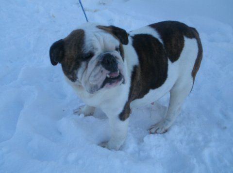 Jesse and Tidus had a litter in November, and they are two bullies that are very different in build and color. Jesse is pretty stocky, with a frenchie look to her face, fawn in color. Tidus is super wrinkles with Brindle and white, smaller bone structure and not much taller than Jesse, but since his bones are smaller I think it gives the impression of more height.