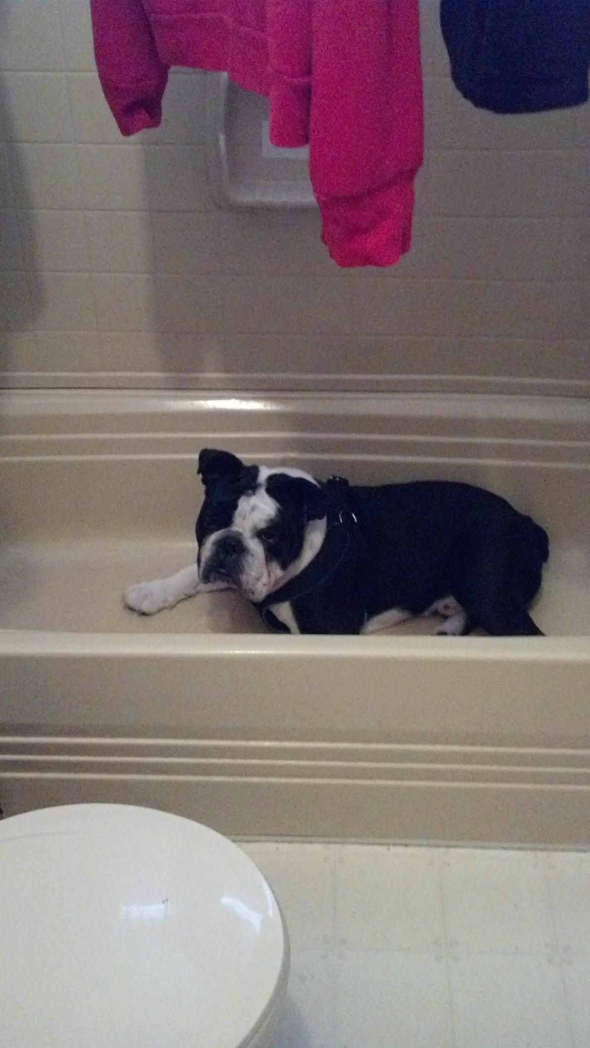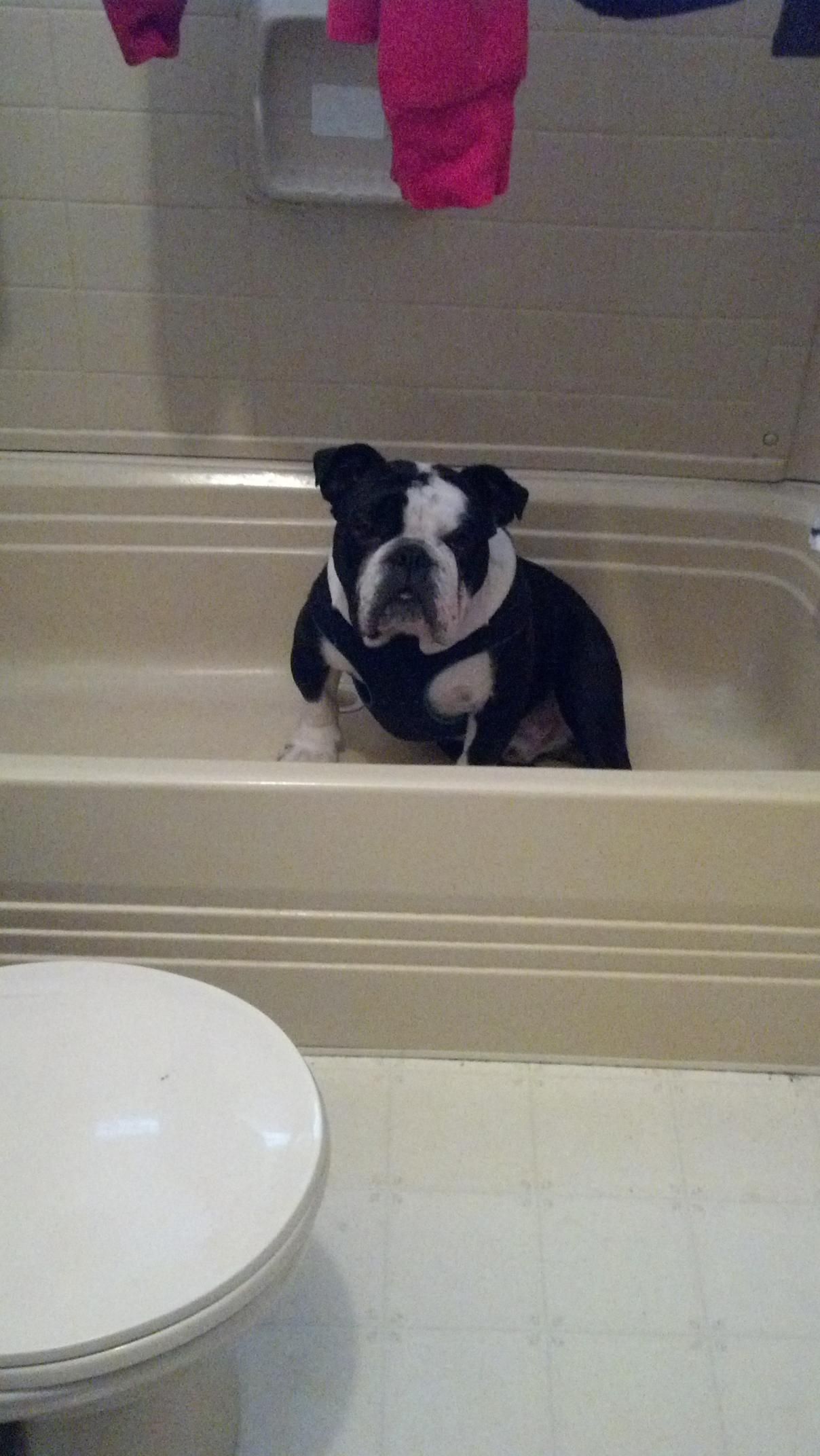 Wilson sure does LOVE that tub, doesn't he? maybe you need to make him a special "tub pad" [MENTION=2014]JeannieCO[/MENTION]!![]()