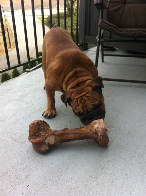 I go to a local butcher and get smoked beef Femur bones for Billy. He works on them hours at a time. Bones last well over a month. View attachment 68718
