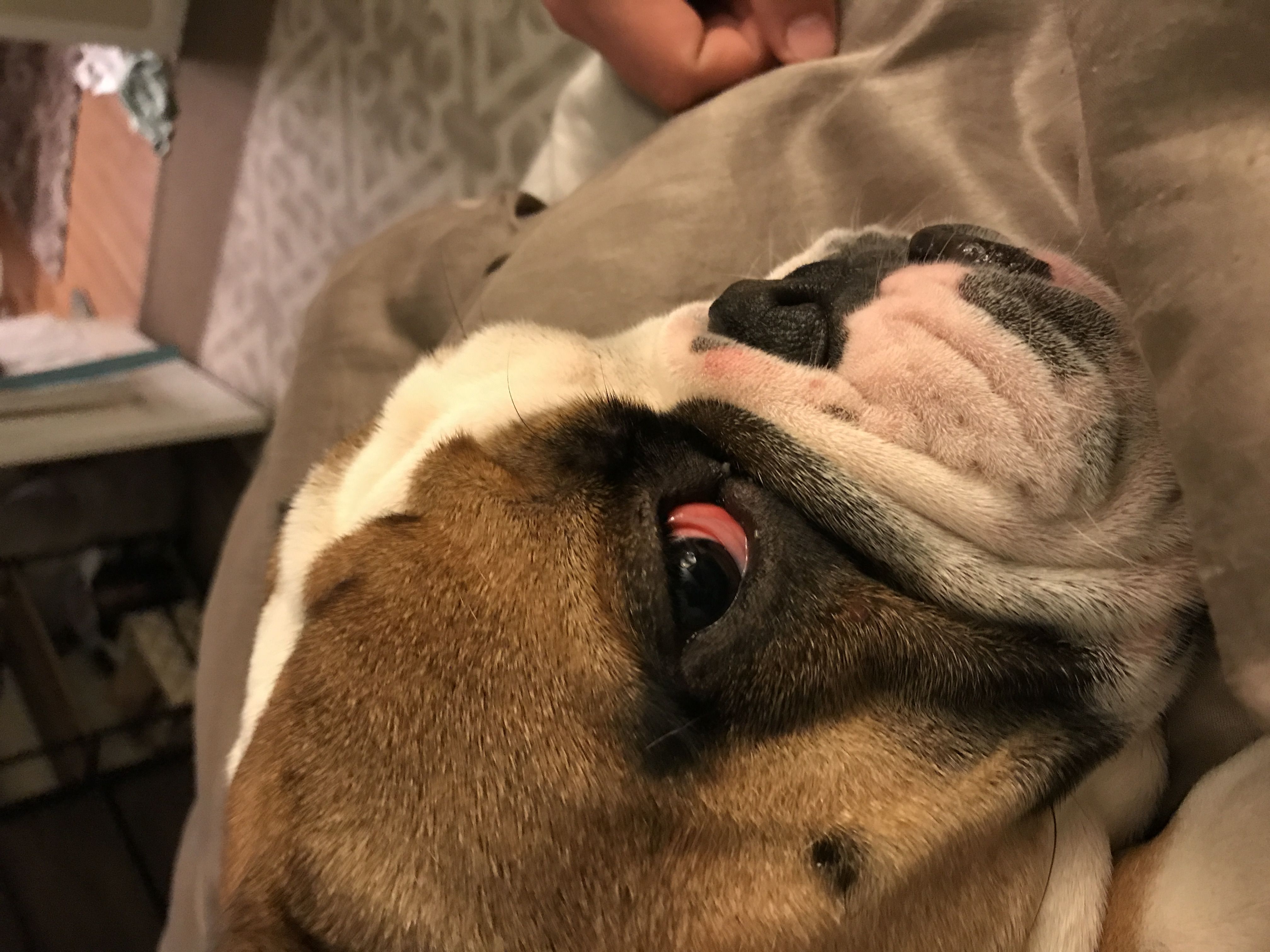 My 11 month old English bulldog got into a dog fight, and it seems he got a puncture wound on his eye. It doesn't seem to bother him at all, he isn't itching or acting different but it is really red and it scares me just because it's his eye. The carbuncle seems to be swollen and red. When he looks at me it looks somewhat normal but when he moves his eye it looks so bad. If we lift up the skin on top and open his eye it looks like he popped a blood vessel or that's where the puncture wound is. Should I be concerned with his eye sight? Or do we think this is I'll just pass? Will eye drops help?