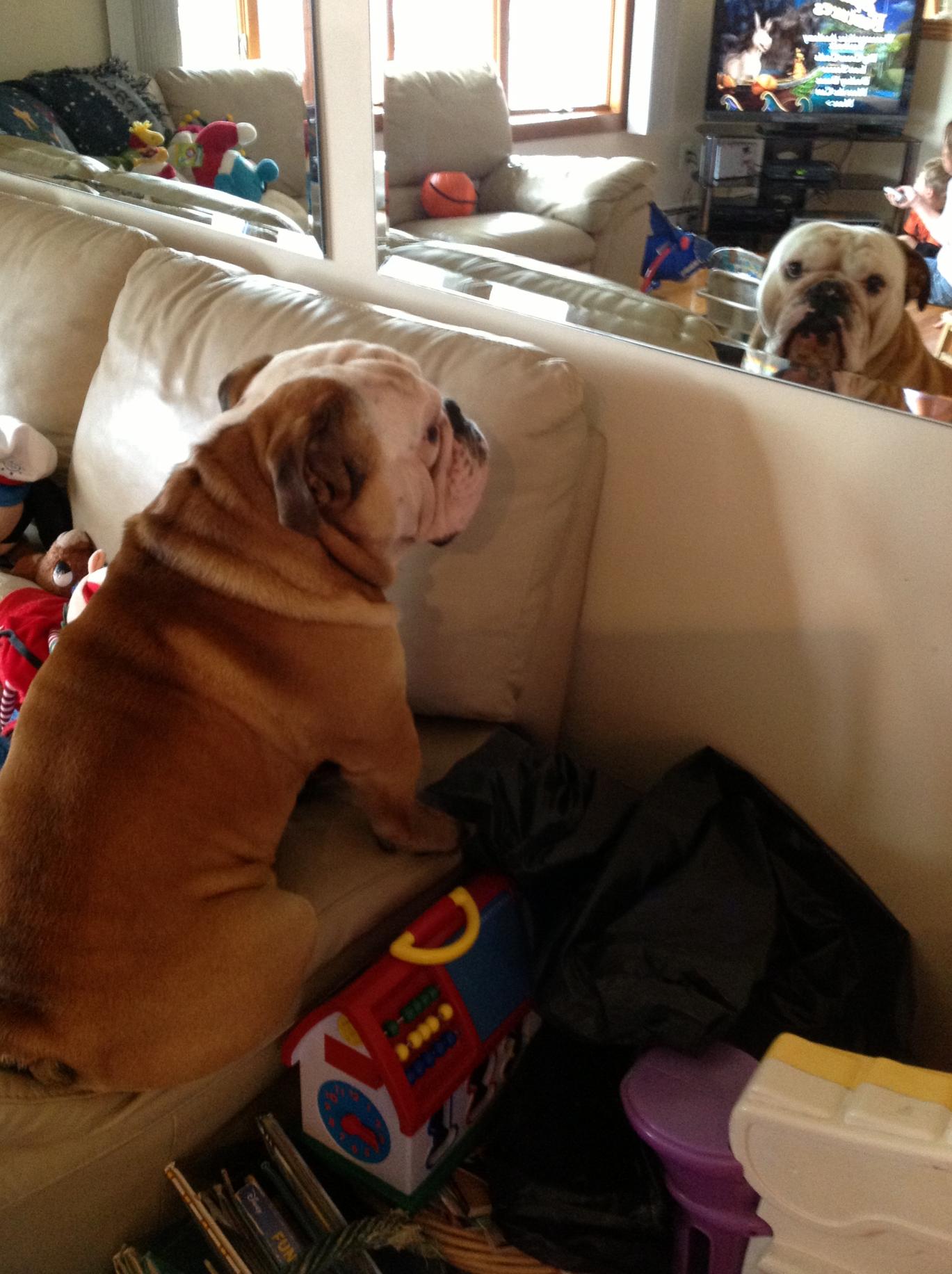 He sure does..but what's not to love right?The pictures you get of Chums are so freakin funny.... he sure loves himself, huh?