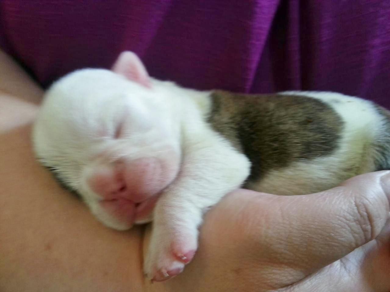 This is miss Molly. She is the puppy I chose today! This is Lola's new sister and she will be coming home in a couple months! She is only 4 days old today and I know its early and bad things can still happen to puppies but I couldn't help but share! This is her in my hands today and I fell in love with her right away. Looking very forward to her coming home!