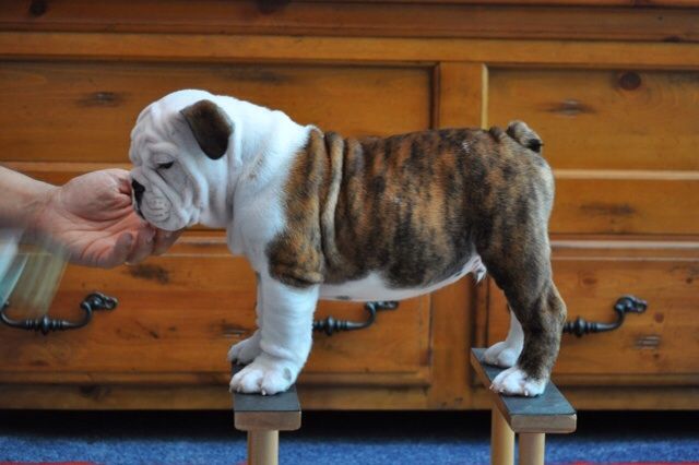 Ohhhhh so cute!!!!Thanks . He's 13 weeks and our second bully. Going to be a very big boy.