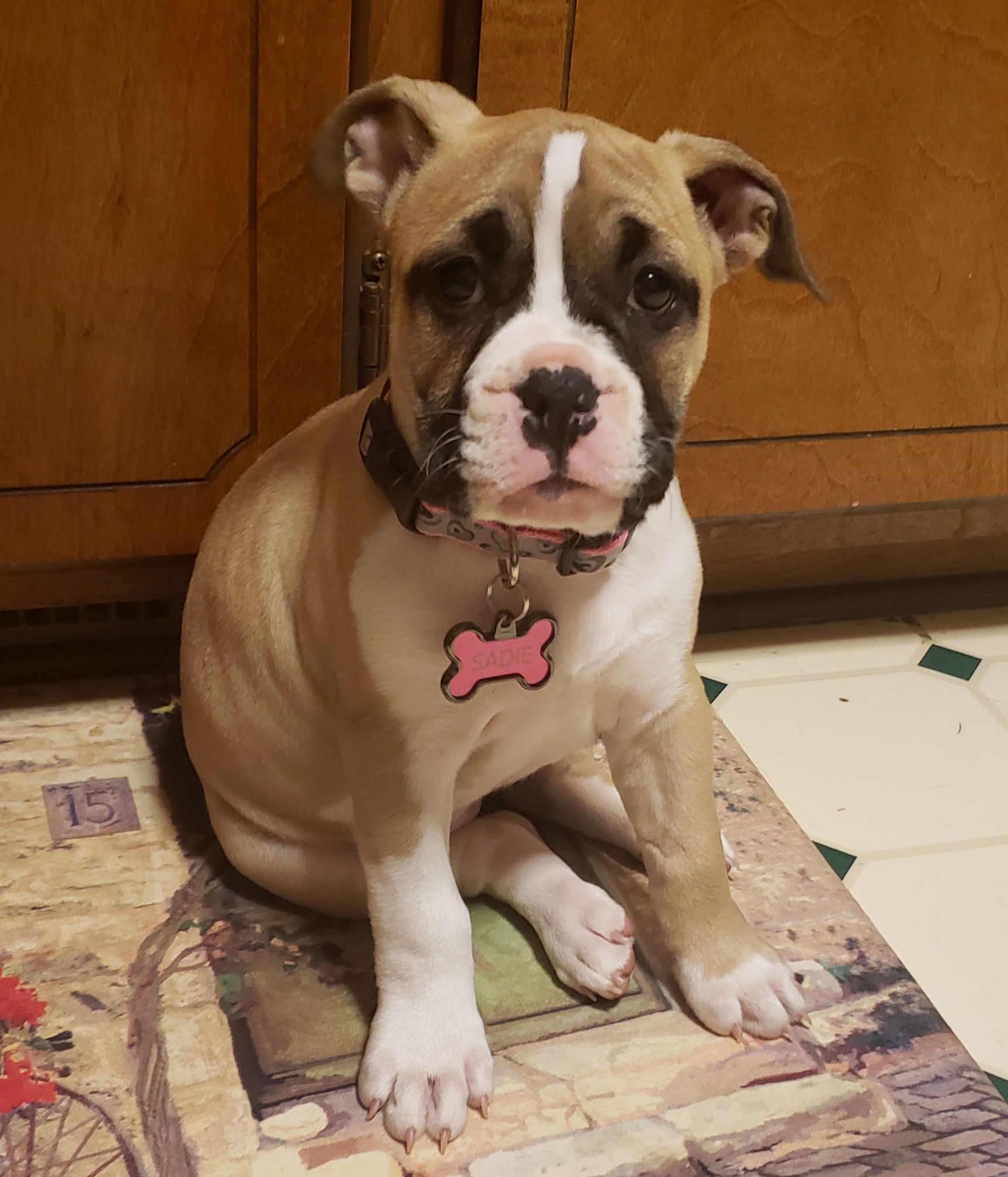 Thank you for showing me pics of your Bella, she's beautiful! This gave me some hope. I hope I'm wrong , and the lady I got her from is telling me the truth and Sadie grows up to have that English bulldog look I love so much like yours does!!