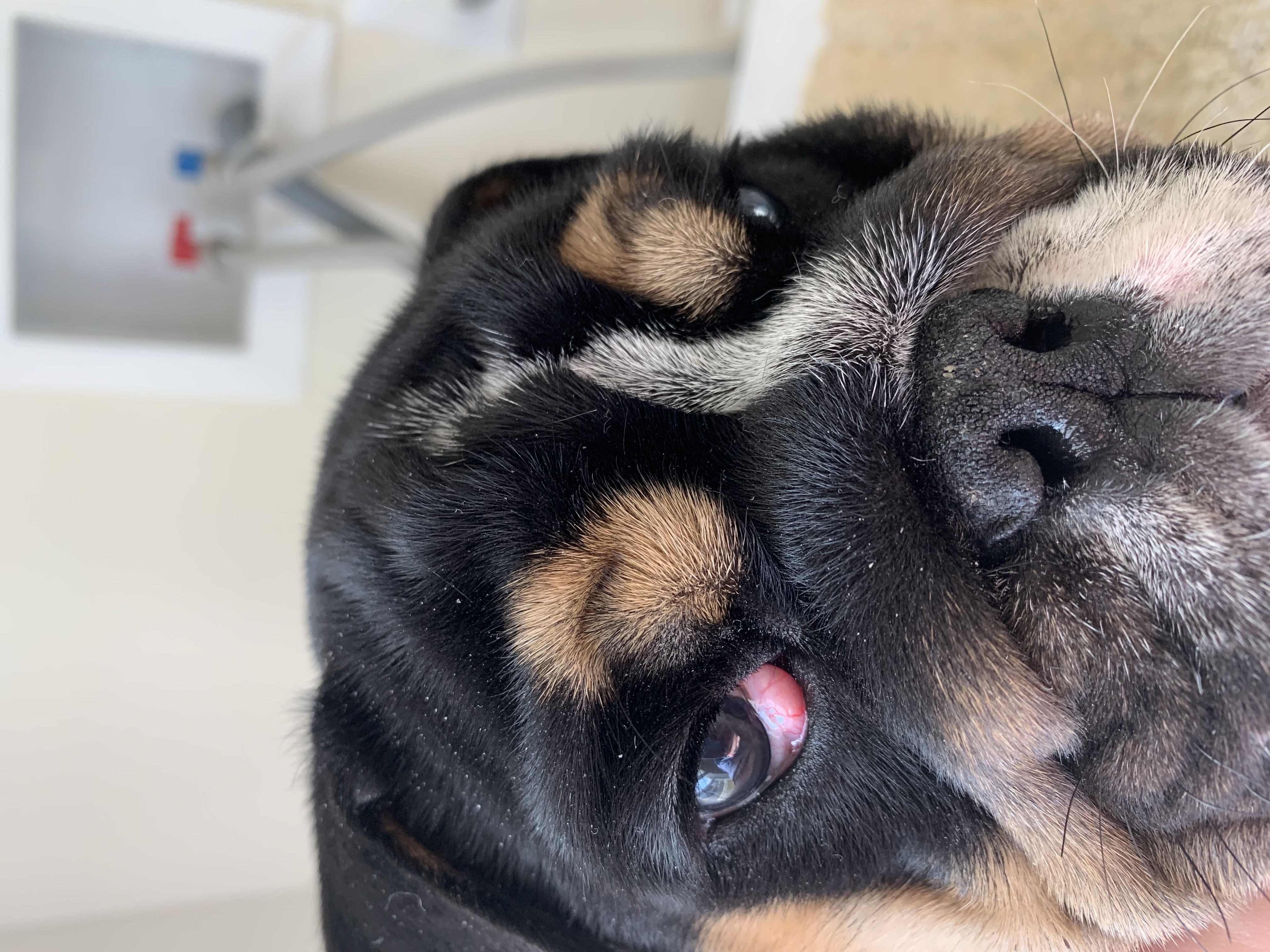 Hey guys... is this the start of cherry eye with Cooper? We have only had him less than 2 weeks!!! I have never experienced cherry eye with Gunner. What should I do? Does this require a vet visit? Please help!View attachment 115657