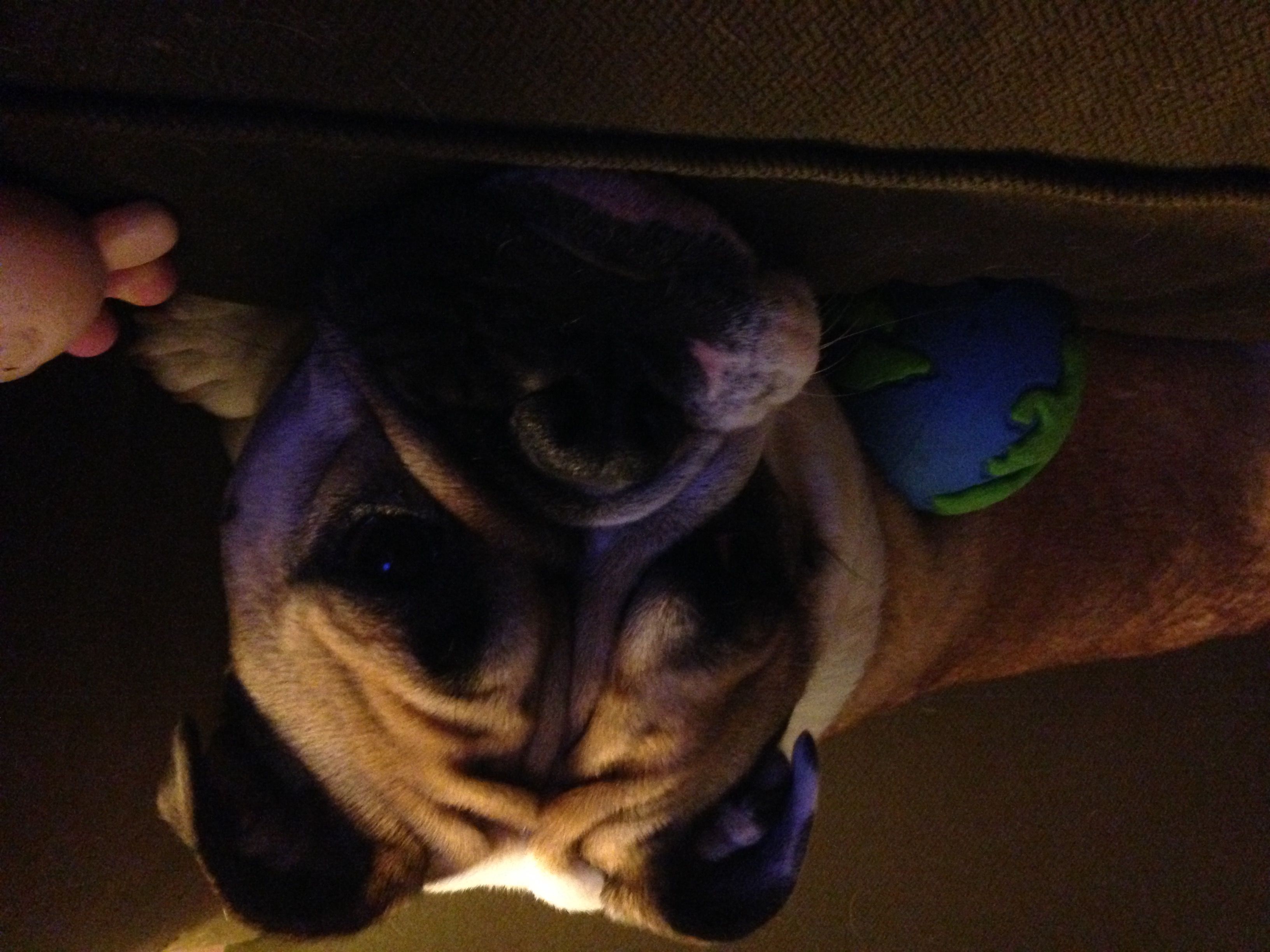 lol thanks!! Would you believe that it's actually a baby teething toy (human baby) that he's had since he's was a little pup and still plays with hahaOf course… LOVE the stuffed piggy!!! Lol