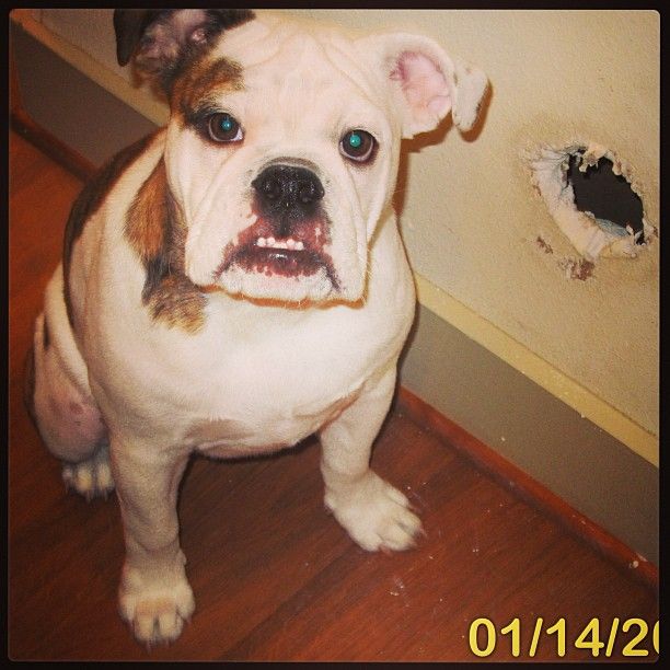Welcome to bully ownership, LOL, don't feel bad, mine have done the same thing, also chewed up a window ledge too. I'm getting pretty good at drywall repair and window seal repair also. In fact Jewel just chewed half of a hole in the wall in their room, the little turkey.