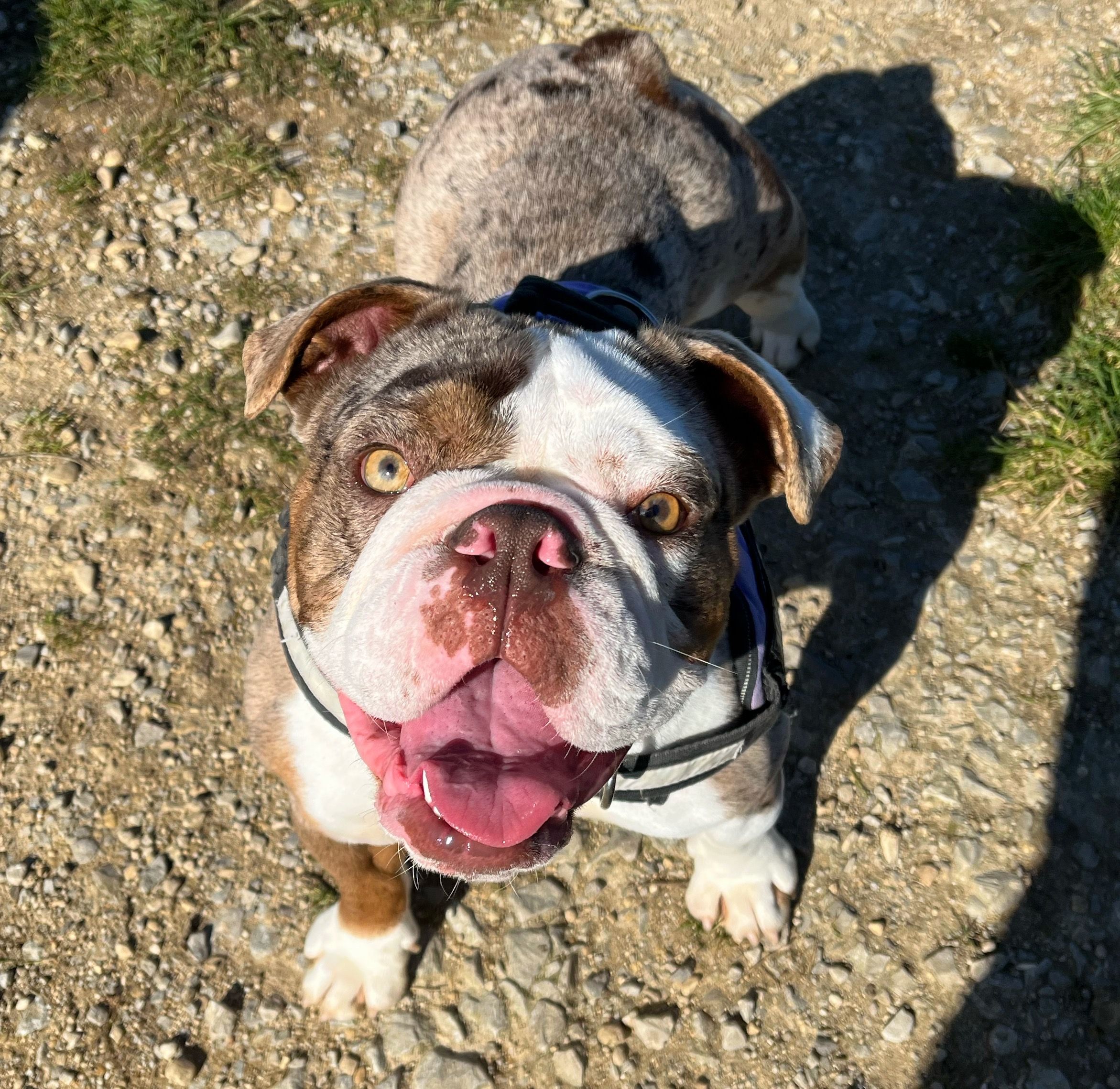 I'm an American living in the UK, and my partner and I have just been approved to adopt an English Bulldog from a rescue here. She's 9 months old and was seized with around 40 other bulldogs from an illegal puppy farm. We've met her twice and introduced her to our Puggle (they seem to love each other) and are due to sign the papers and bring her home this Friday. We're naming her Cadbury, and we're very excited!