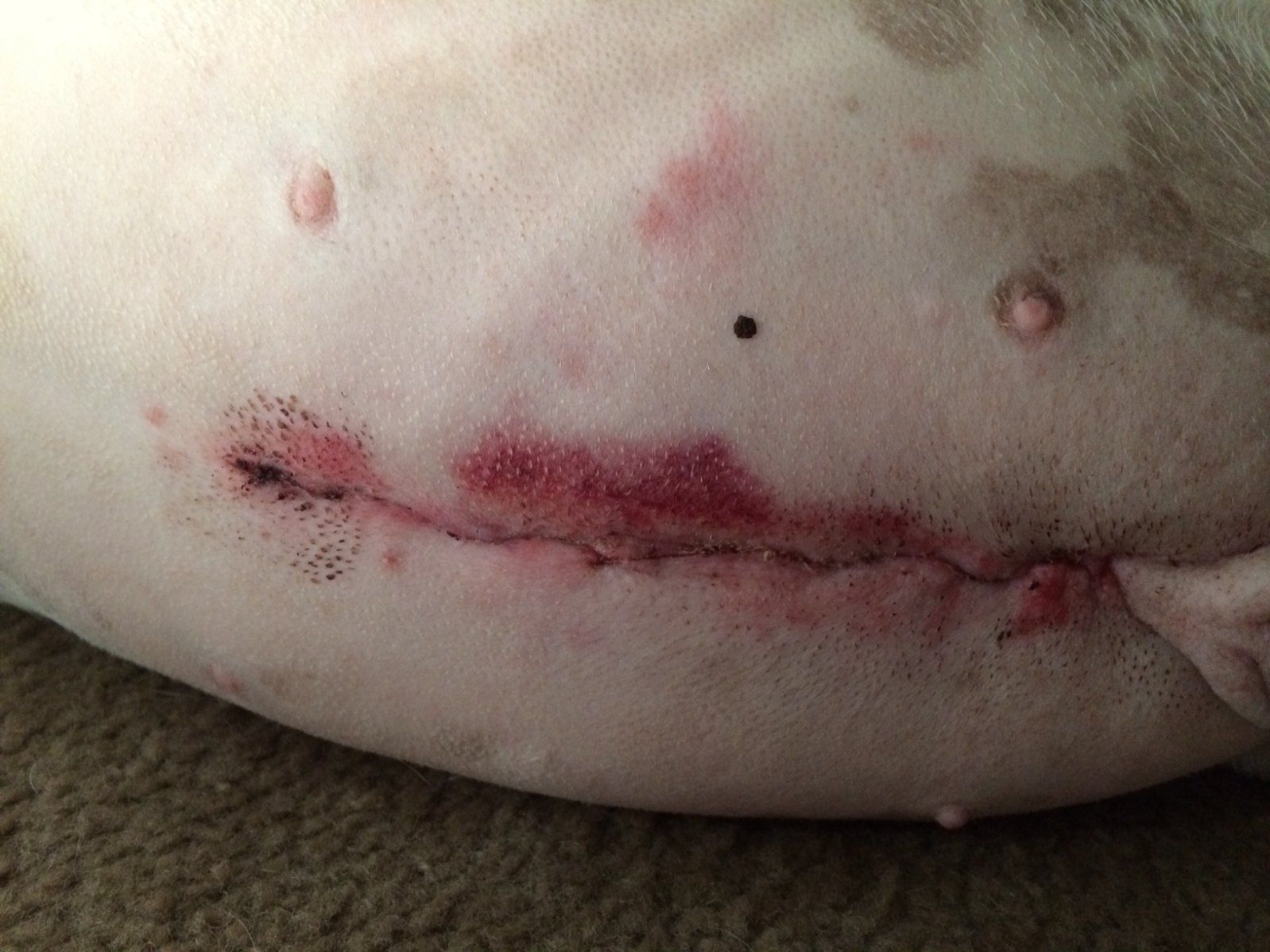 First is his bellyBig incision. The ones in the kennel are minutes after he awoke from anesthesia. Then one with his daddy on his first night home after surgery, and the last two are from yesterday! He thanks you all for all the prayers! Slow but steady - Love, Ty & Jessica @bullmama @2BullyMama @Blueberrys Mom @My Otis @brutus77 @Manydogs @DieselsMom