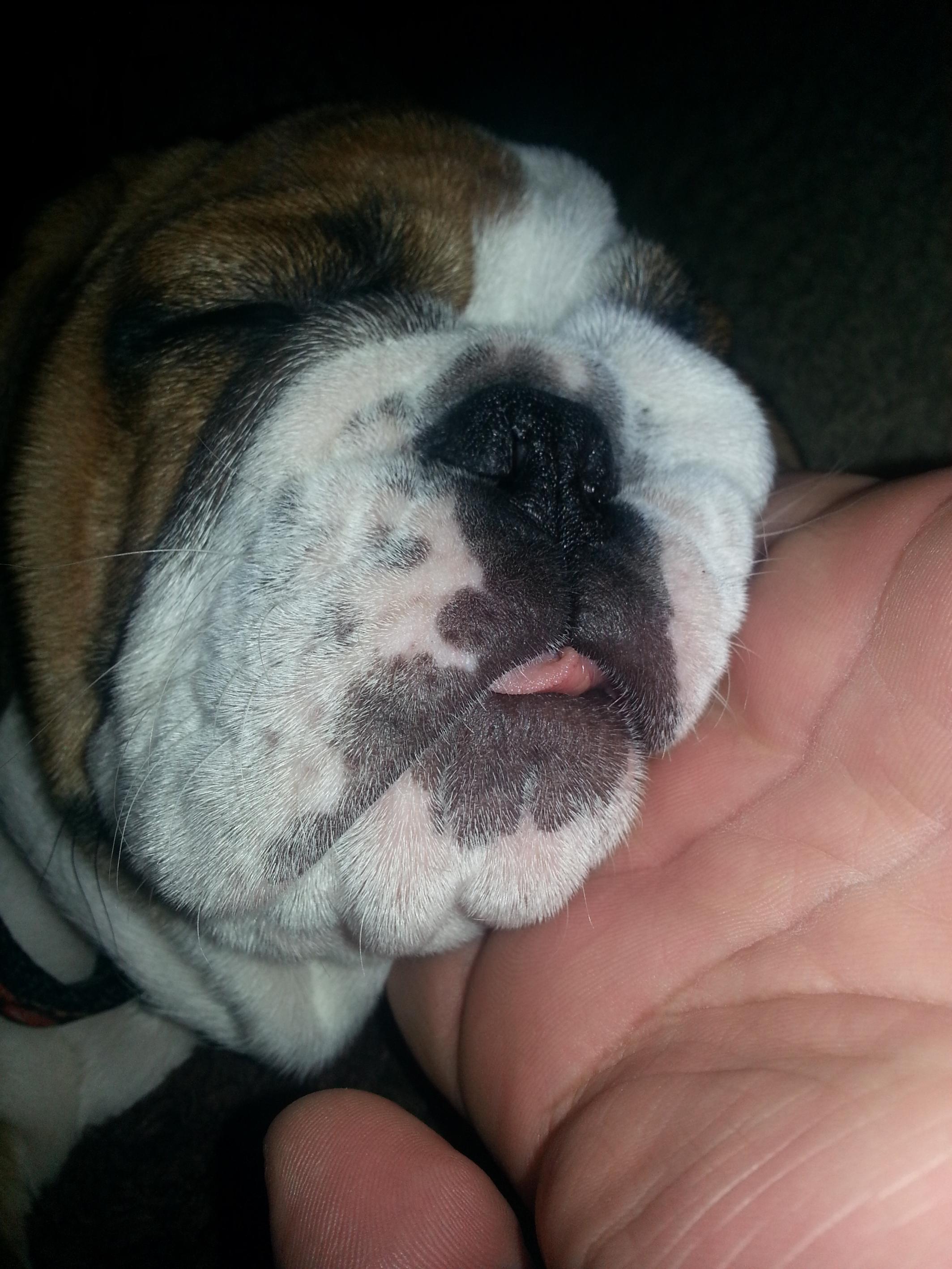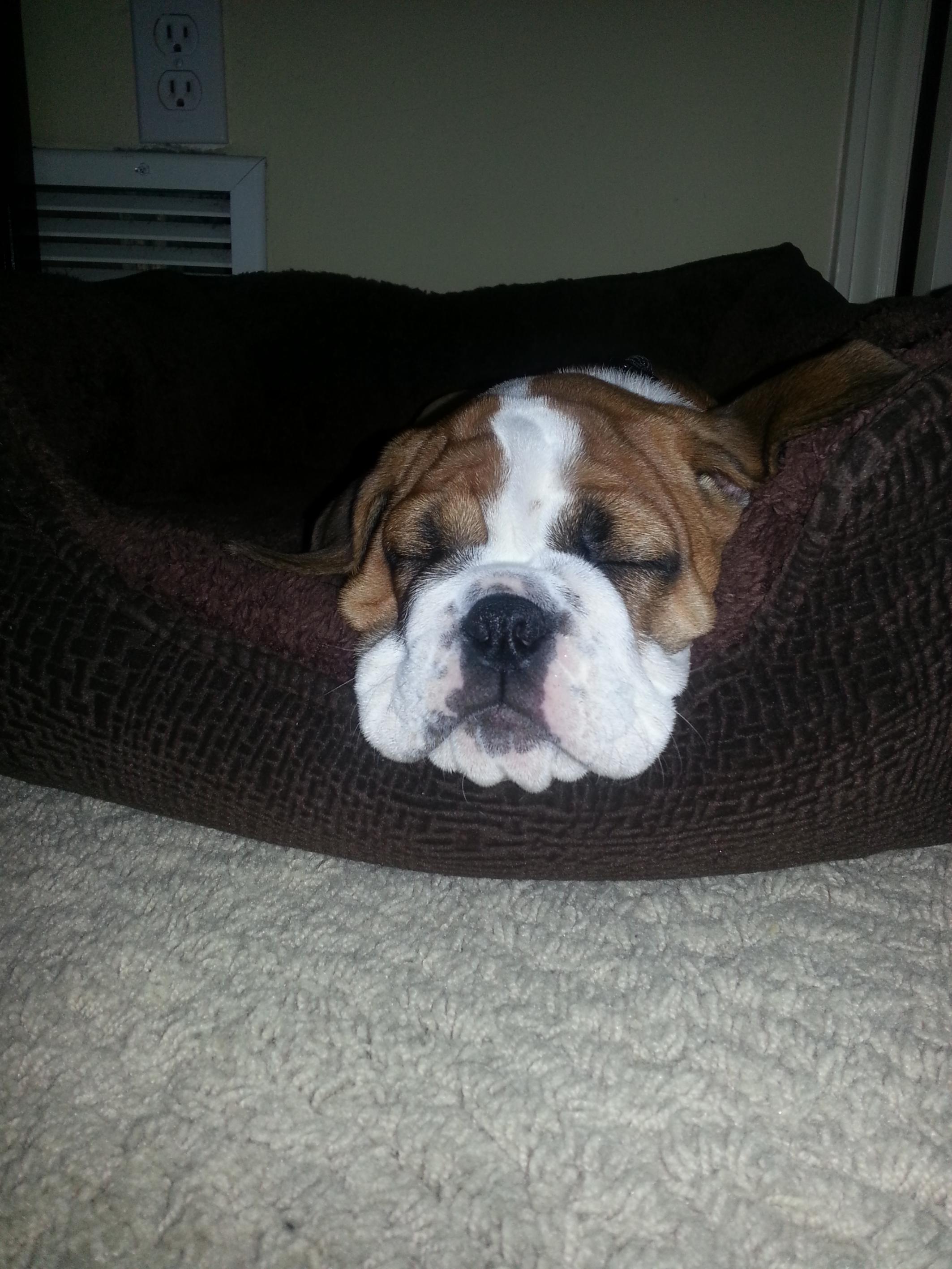 Oh wow she is sooo squishy!!!! I want to kiss that smooshy face! Love her marking She looks like a mini st.bernard![]()