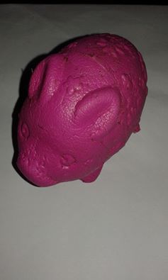 Kong Tuff 'N Lite Pig. I advice you not to buy. It's light weight and my older bully hasn't gotten anything out of it, but the little shark did. Luckily it came out this way. If he'd gotten sick I would of had no glue why, since the piece was just pealed of the toy and there was no clear sign that is was broken. Kong manufacturer has been told about this.