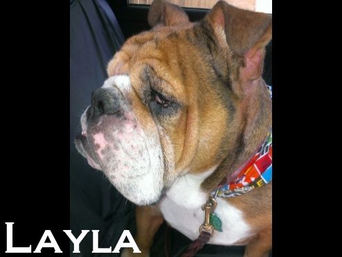 Layla was purchased on Craigslist for $100, she developed a Urinary Tract Infection and when it was suggested to her owner a vet visit might be in order, the response was "I paid $100 for this dog, I'm not putting another dime into her"! Fortunately, Layla made her way to St. Louis English Bulldog Rescue.