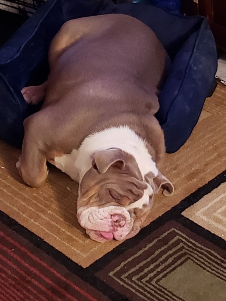 I was taking a picture when was sleeping, he was snoring and out cold. When I took the picture one eye went wide open and then he went back to sleep and snored away again. Thought it was funny.