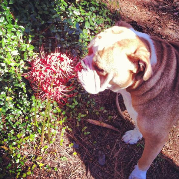 So sweet! My Jake would eat that pretty flower..then ask questions later...well..honestly he's pee on it first..That seems to be his new favorite thing! Killed all my daisies!!!![]()