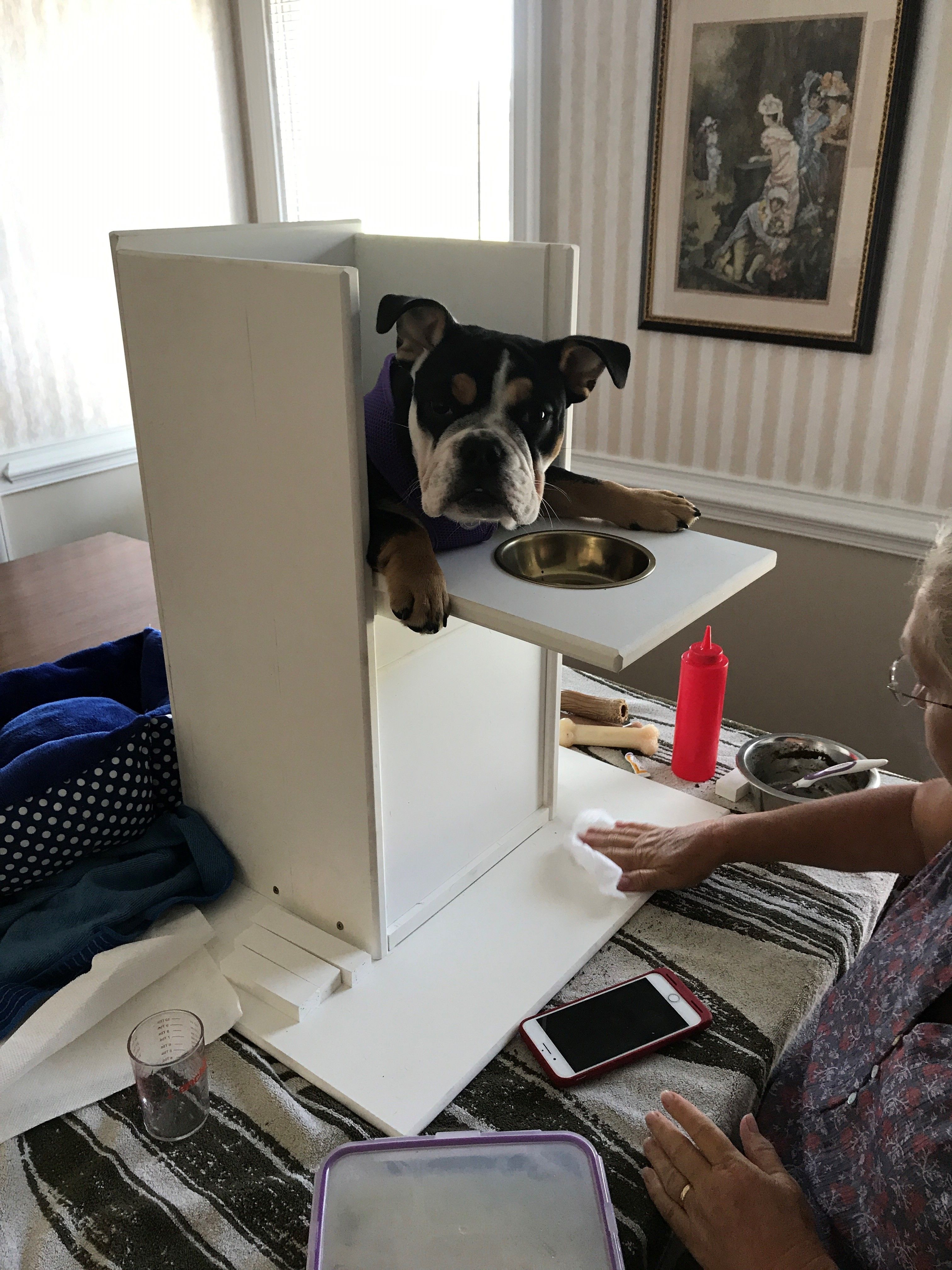 She responded very well to Sandy's feeding regimen and as she grew I built new chairs for her. As she got older she could no longer stay in her baily chair so Sandy would sit with her upright in her lap for 30 minutes twice each day. They developed a very strong bond.