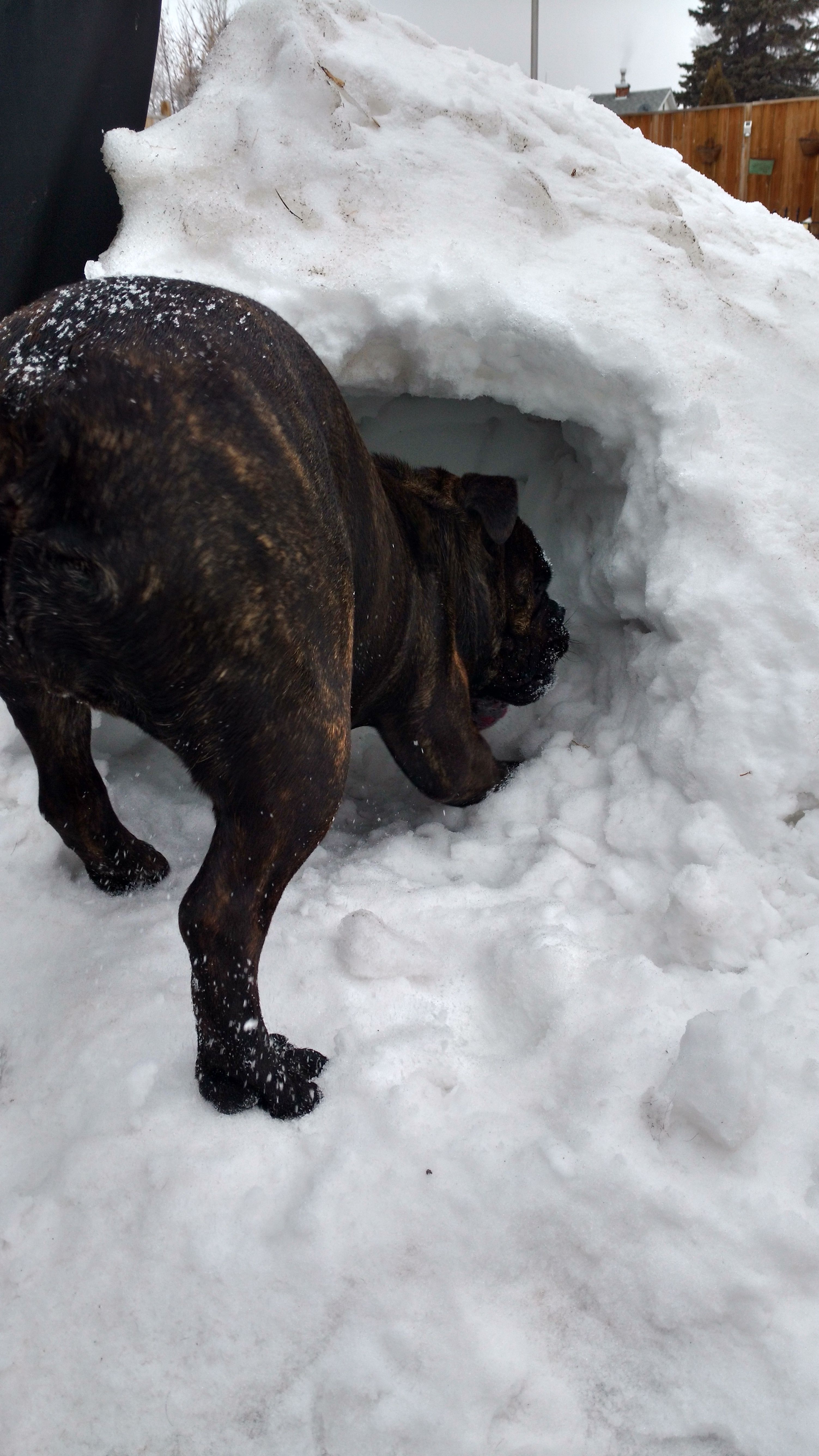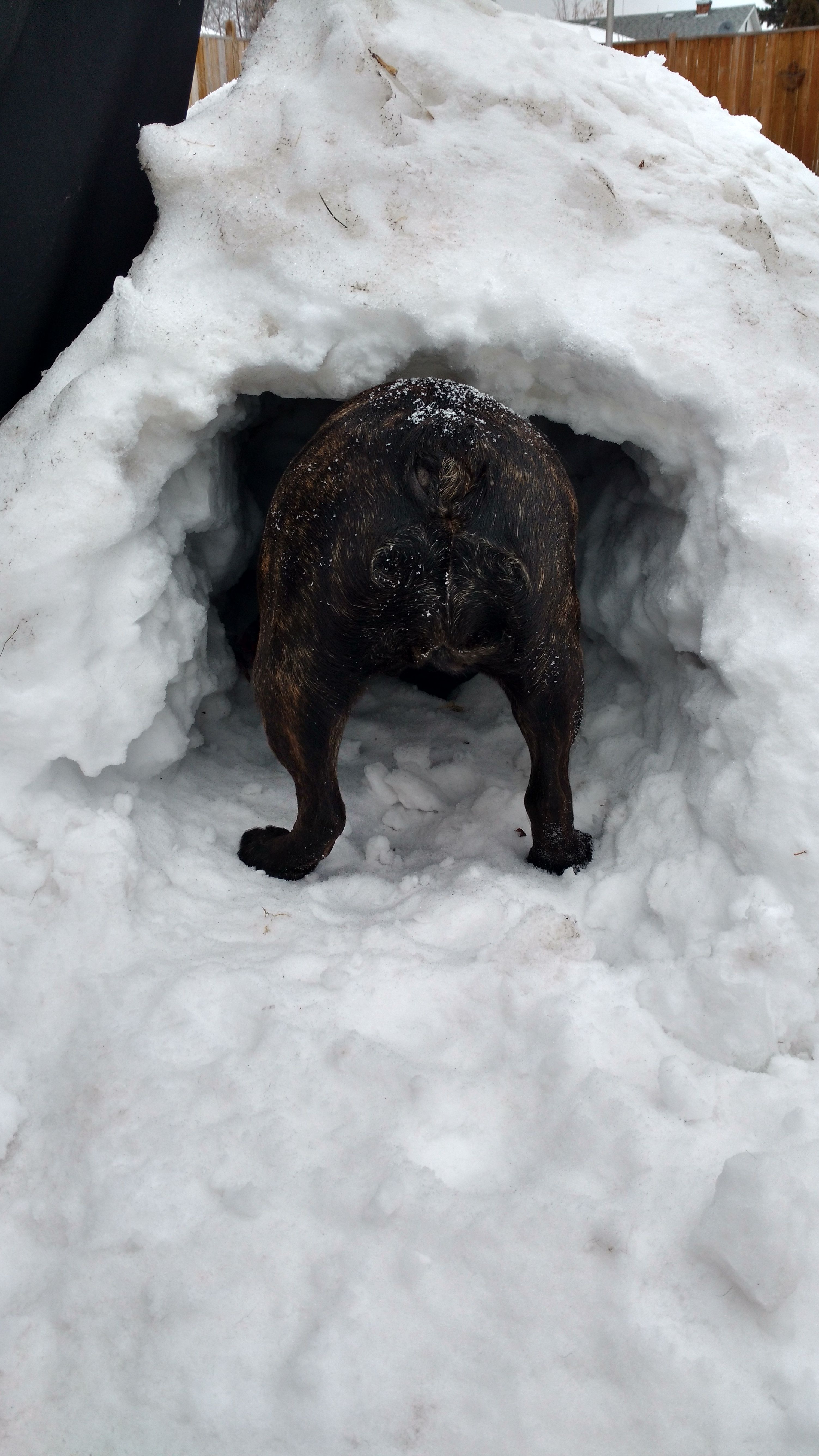 I remember this….lollNyala has started to dig a hole in the pile of snow I was throwing on one side. She's been at it for a week. Today I decided to make the entrance bigger. But she did help. She just wanted to go inside and dig more. Too funny!