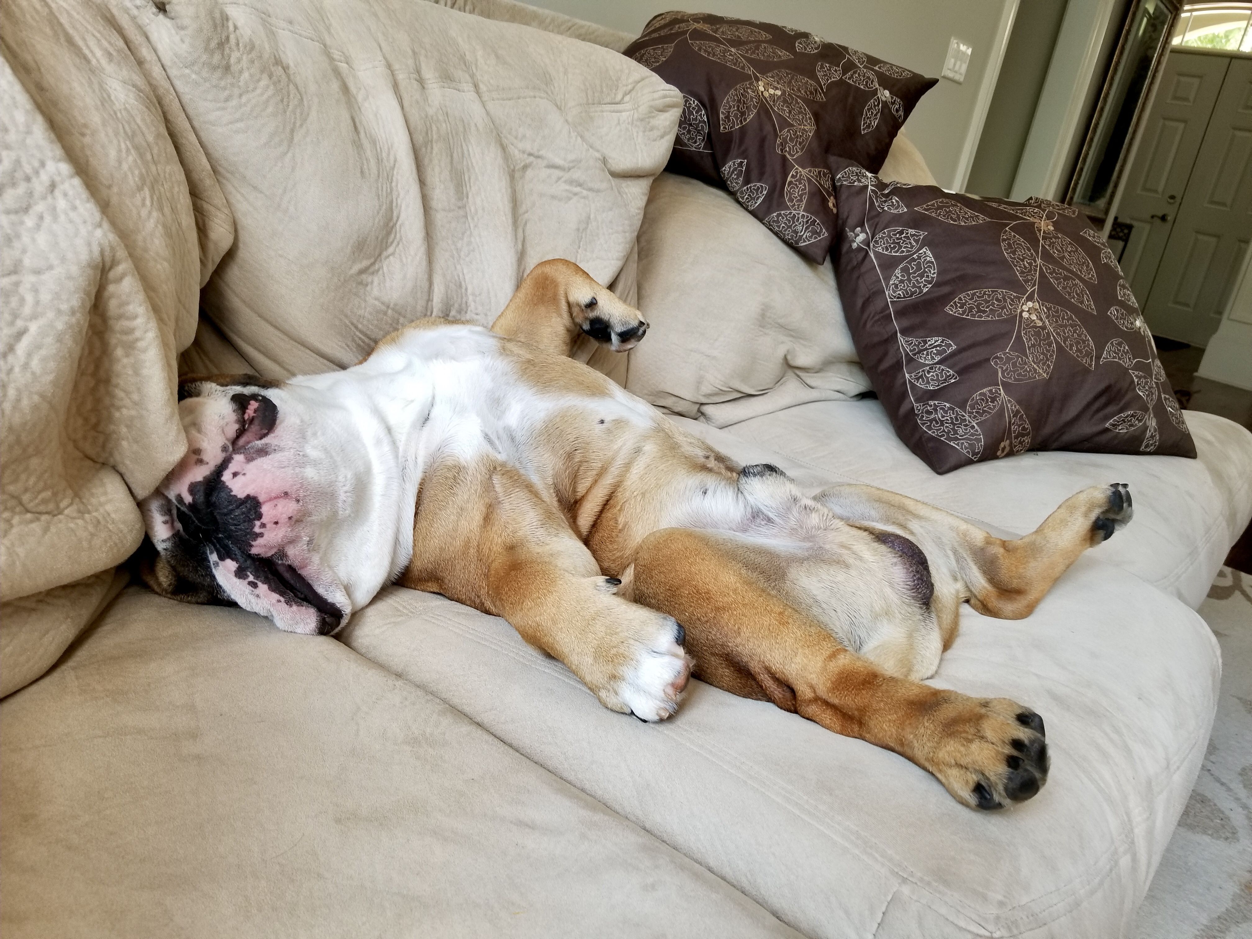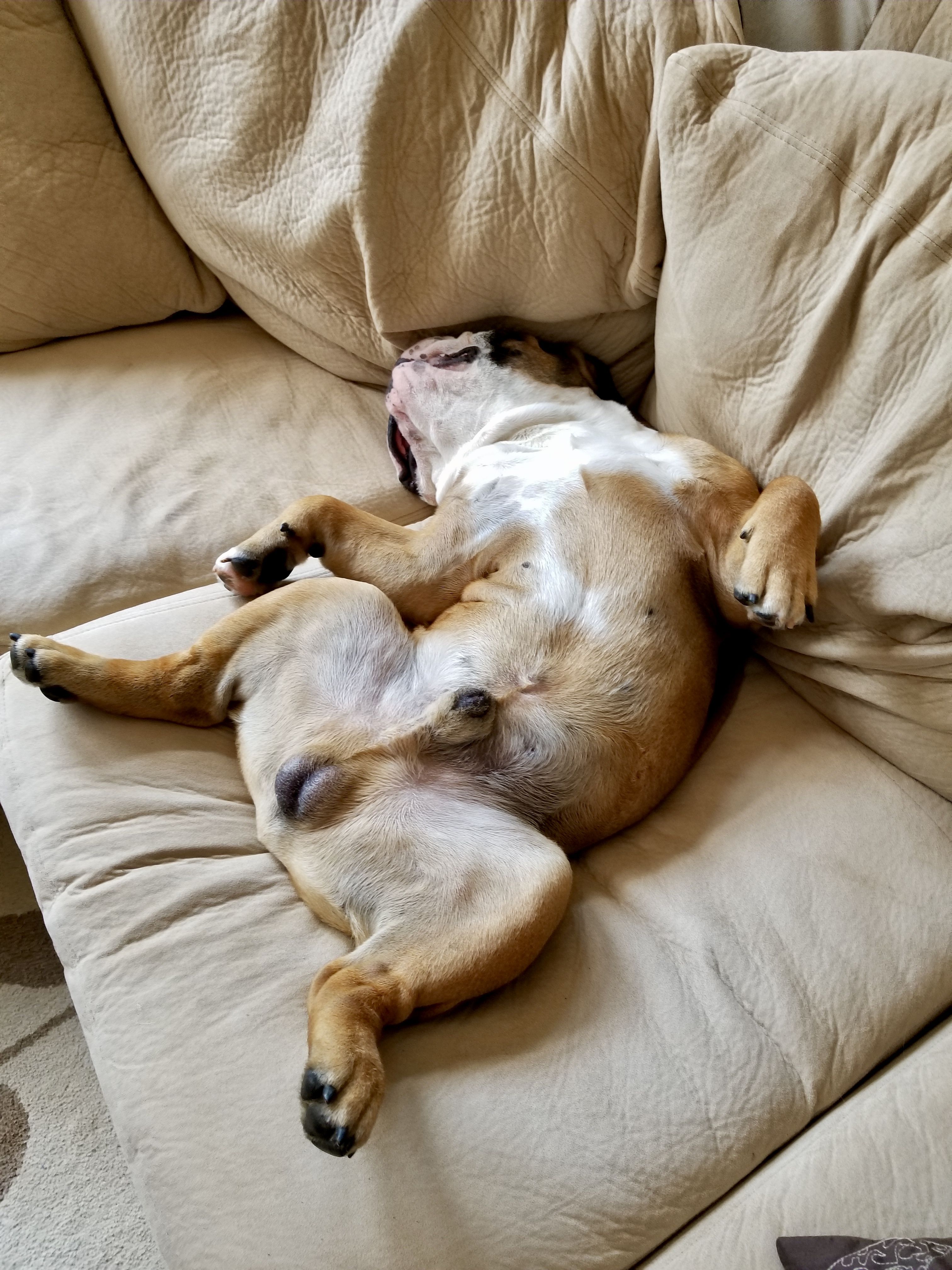 Manydogs Well-known member Community Veteran May 2, 2013 13,712 2,216 Tennessee Country U.S.A. Bulldog(s) Names Maudee,MarthaKatie,Lizzie,Bro.Mini Jun 12, 2018 #13 [MENTION=15780]Lalaloopsie[/MENTION] Boy, oh boy, Tank sure can get relaxed!! He is just squishy all over! He is a "gummy" dog!!