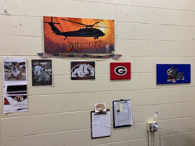 Here’s my office...walls, the floor...Bulldogs everywhere. I need a bigger house lol.
