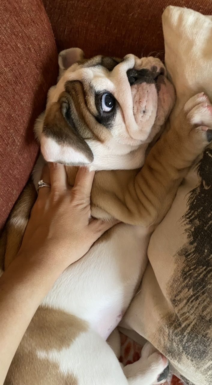 Good afternoon! I have a brand spankin new eb puppy. Sheās is nine weeks old and does not have a name yet. I am struggling with names! We picked her up on Saturday and sheās has done pretty well so far. She came from the breeder eating Royal Canin Bulldog puppy. She eats it well. This morning after eating and playing and many times out to potty, I placed her in her playpen and took my children to school. When I returned, it looked like she had been really upset and threw up all of her breakfast on the floor and her bed. I am trying to get her more used to her playpen by placing her in there when Iām doing house work so she can see me. She cries a little but mostly will settle down, but other times she insists that I come get her. I guess Iām worried that after upsetting herself to the point of throwing up, that that is not normal? How do I curb the anxiety of her being alone when I need to run an errand?