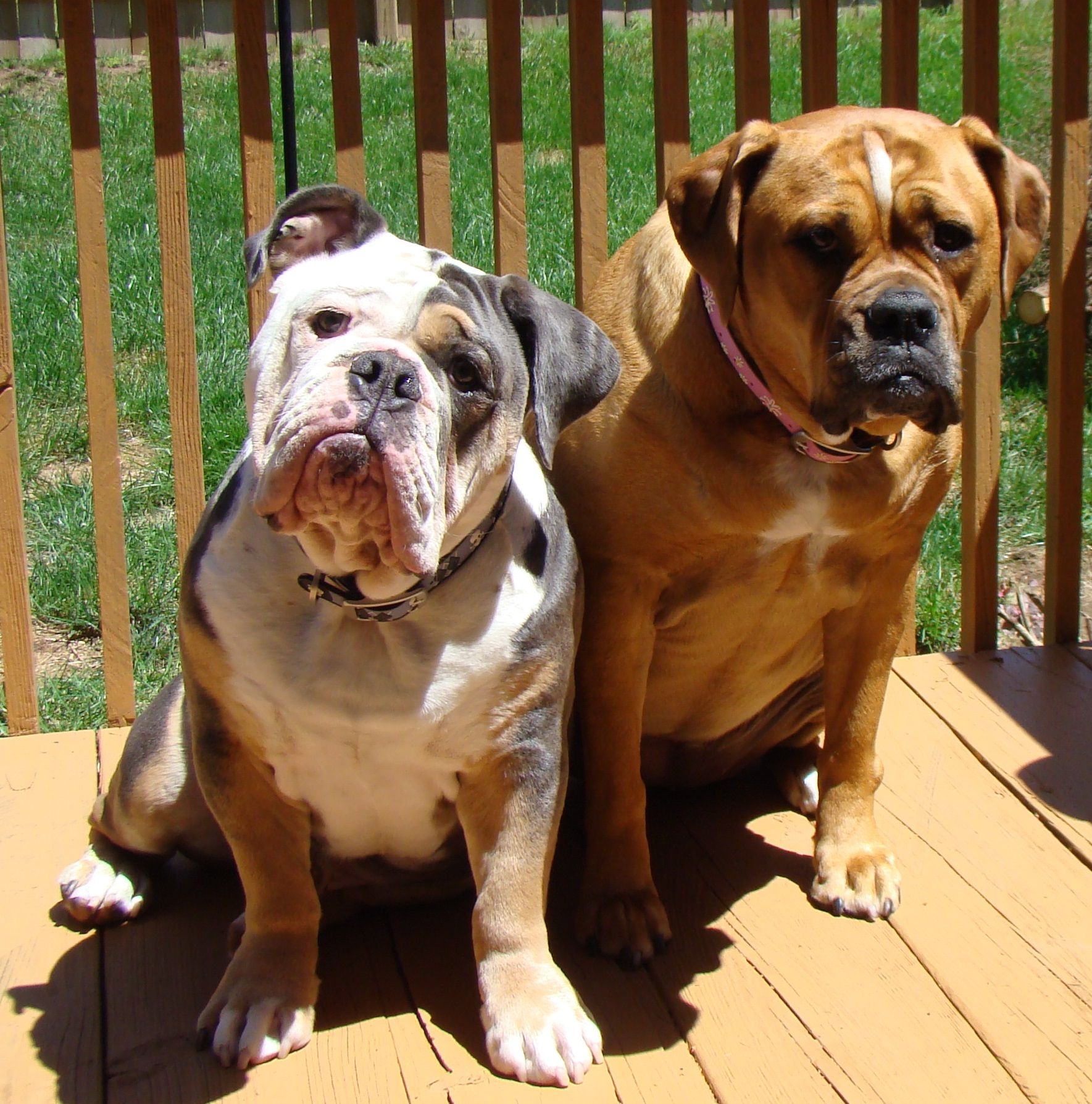 Tia is my more serious but sweet protector, she seems to have some prey drive and loves to chase things/small animals for fun (not hurting them). Nico is the fun loving neurotic, goofball little brother. Both have the Bulldog stubbornness. Nico seems to have more the of the English Bulldog personality where Tia took after her Mastiff lineage.