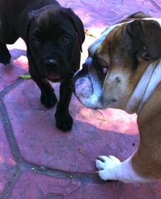 Bullys are smart dogs. Because of this, they have the tendency to analyze a situation to determine the benefit to them before doing anything. Added to that, bulldogs have an independent streak, so pleasing the master is not always enough incentive. Hence, they get the label, stubborn. A lot of times, parents just allow the bully to "rule the house" without problems. This is not ideal but, no harm if the parents like it that way and their bullys are still manageable.