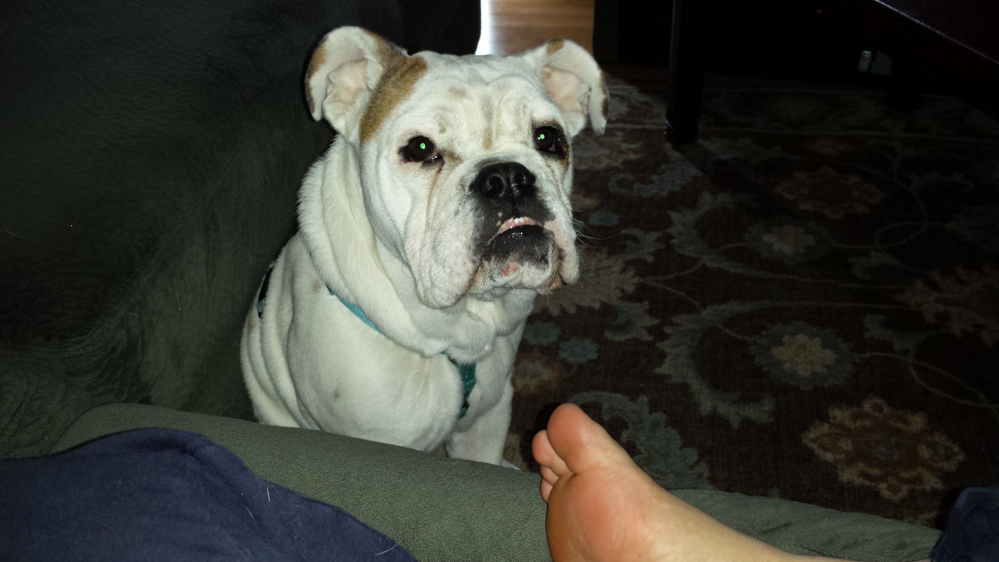 3. Chubbs decided to keep going on the couch so I had to keep claiming the it. He's definitely not fond of me claiming anything. I sat down and he started licking my feet! Not sure how I feel about that (his mouth so close.)