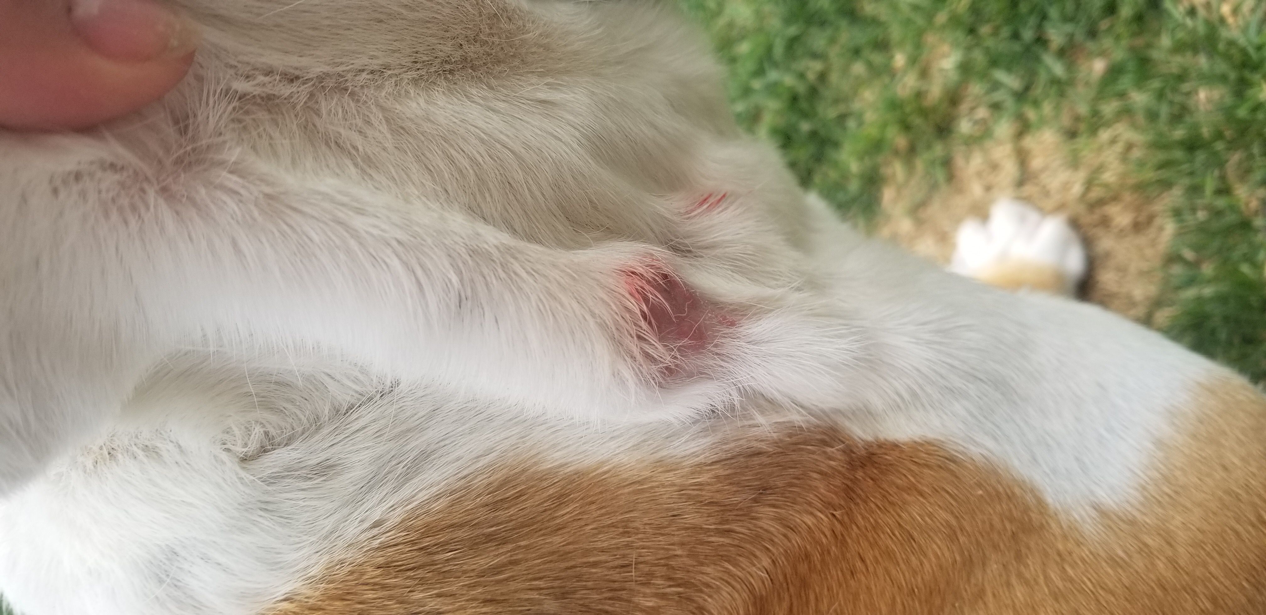 Well, was brushing Duke earlier and saw this! I missed that one. Iām sure I went all over him yesterday. Missing a good patch of fur with teeth punctures. Sheās in my black book....