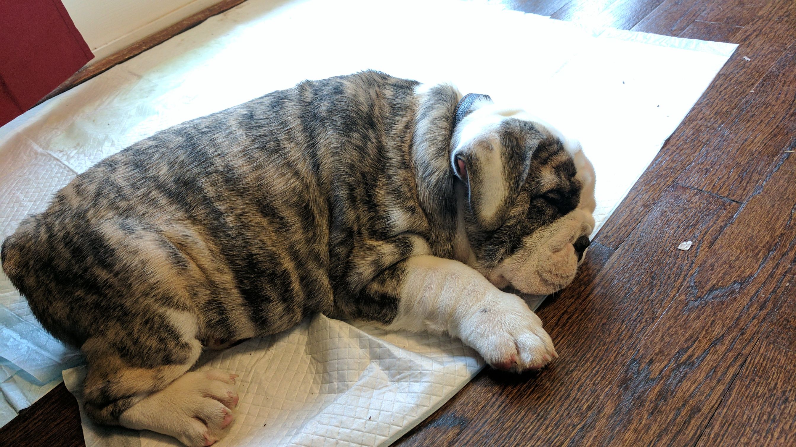 Give him some time. Since all of this is new to him, he's still adjusting. I know that they love hard surfaces... Tyson loves the tile inside or concrete outside. but he'll eventually come around and sleep on his bedI think I got away. He doesn't seem to like the bedding I bought him. And he can't be hot... It's like 65 in my house and 40 outside, but would rather sleep on hardwood than in his kennel or on the pillows.