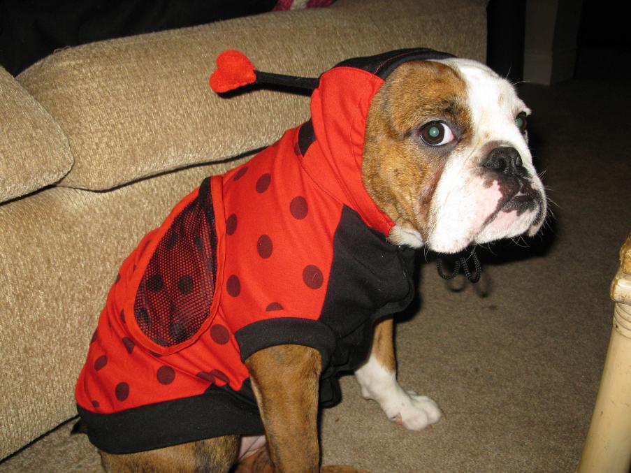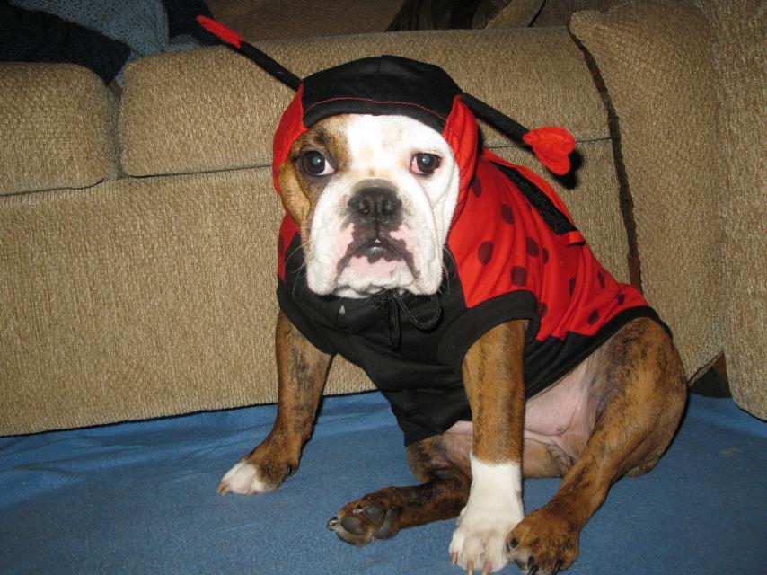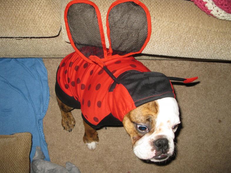 Sorry for the horrible iPhone photo, but I didn't get a chance to get the good ones off my camera. Lola HATES her costume, btw. Can you tell?