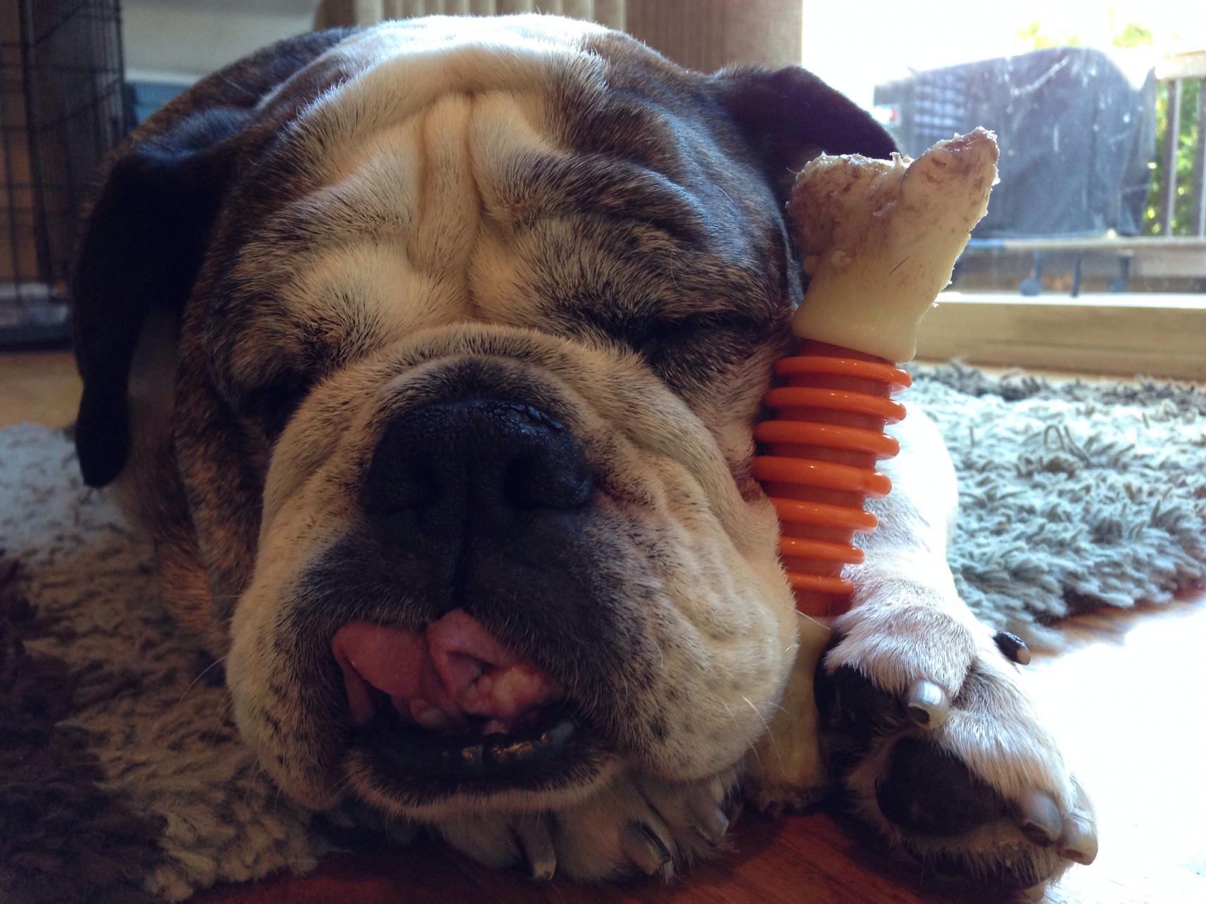 I would love to come home to see that it's so cute I wish I had a bigger place I think I would have 5 bulldogs I love it so cute