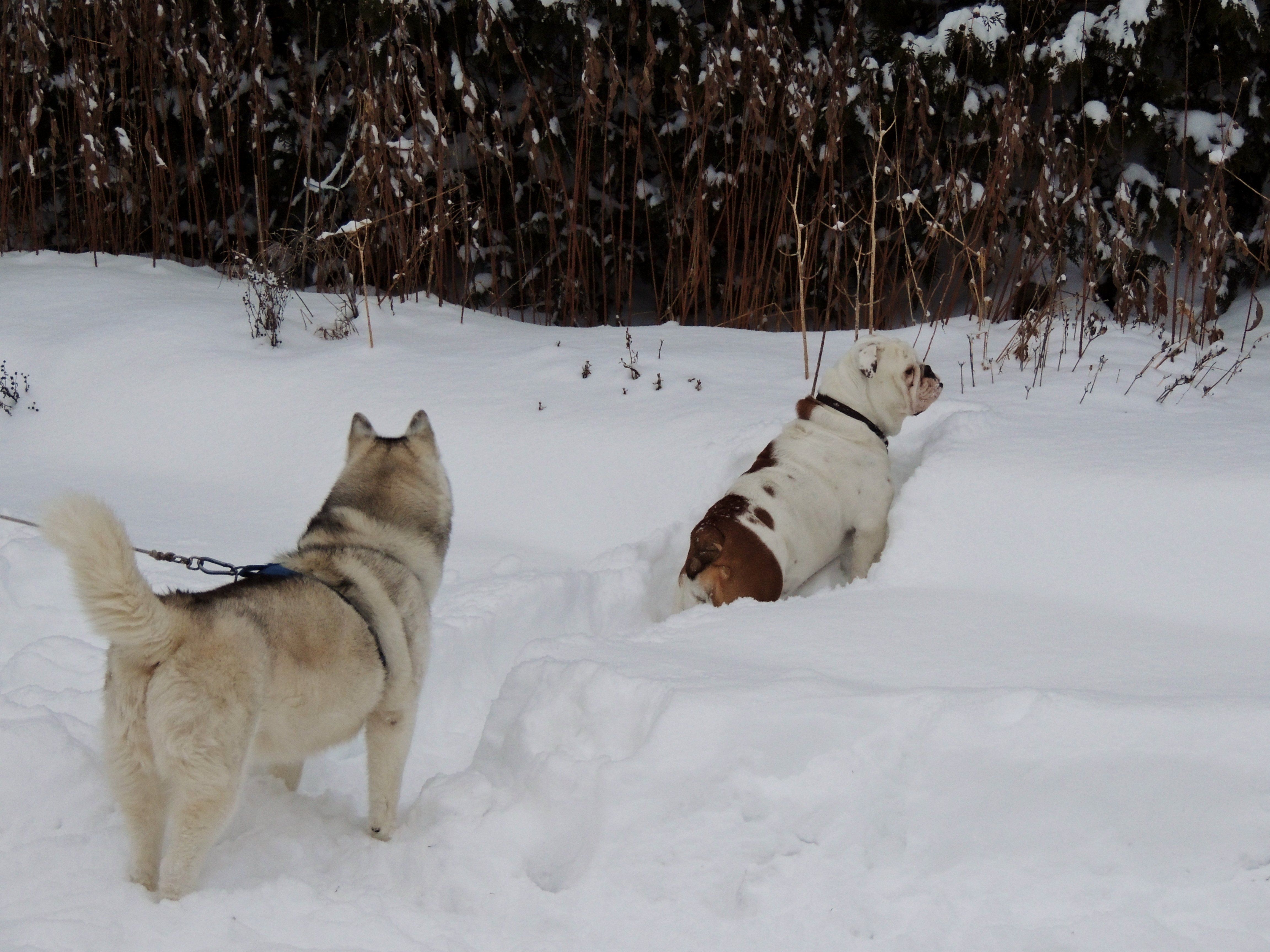 As I said Tilly thought she was a Husky and for the life of her could not figure out why she gets stuck in the snow and Willow Would not , Here she broke thru the crust and was struck till Willow came and sort of broke trail for her to get out lol