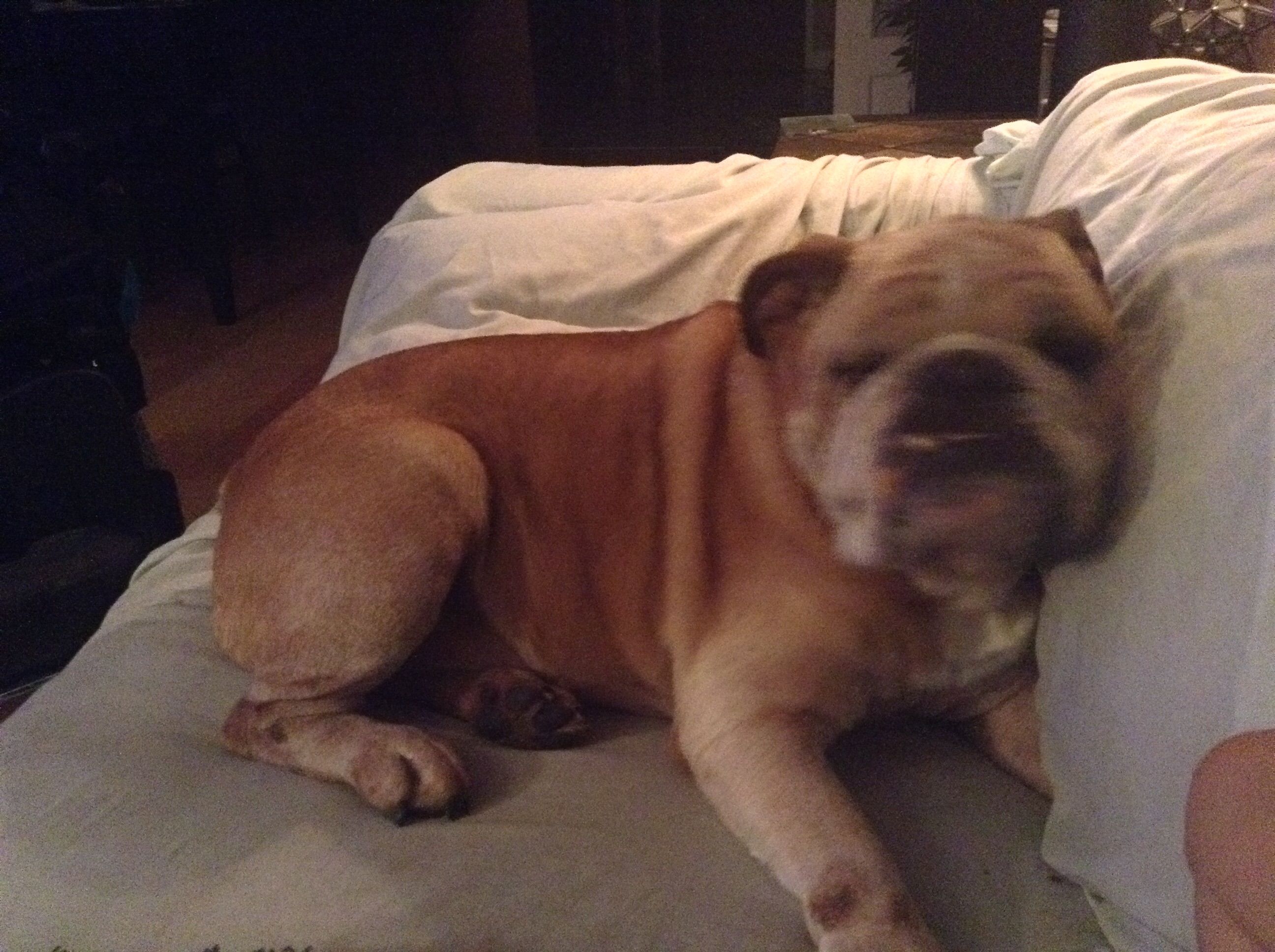 Hi everyone! New here and just want to say so happy to hear about this bully longevity! Our angel Capone is turning 10 this July 31 and is happy healthy and energetic. His only health problem is osteoarthritis of the spine, left knee and left elbow. He gets laser treatment once a month and responds very well. He seems to get smarter everyday and loves to walk. We feed him Royal Canin English Bulldog formula and supplement with 4Cyte (for the past year), prior to this we used Sasha's Blend. Kisses and well wishes to everyoe's bully babies, and here's hoping our darlings don't go to "college" anytime soon!!!