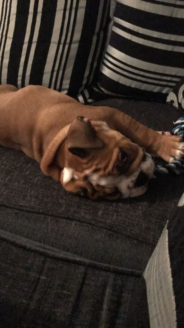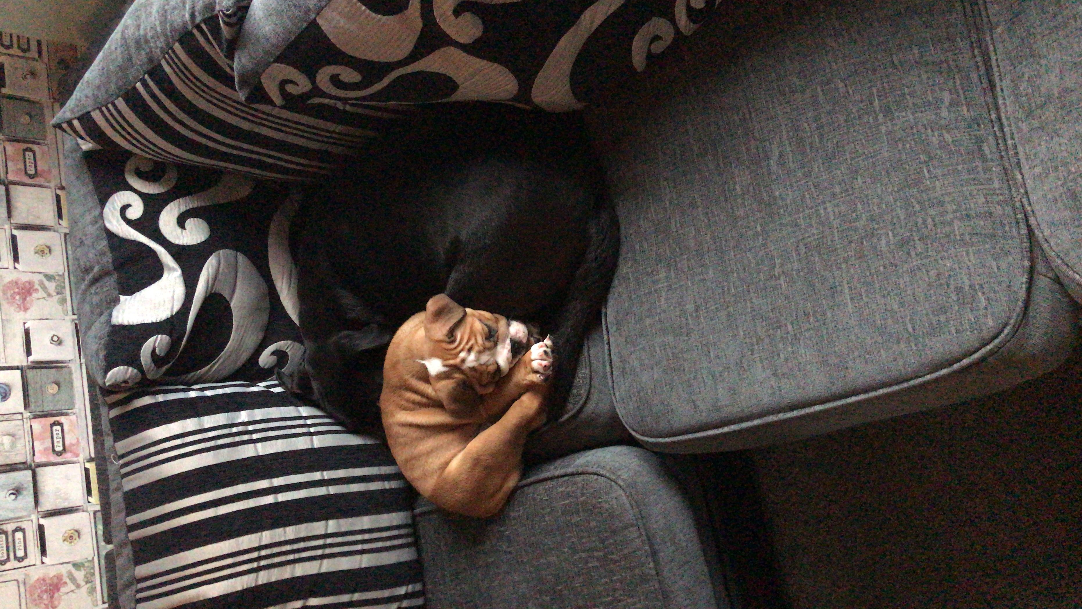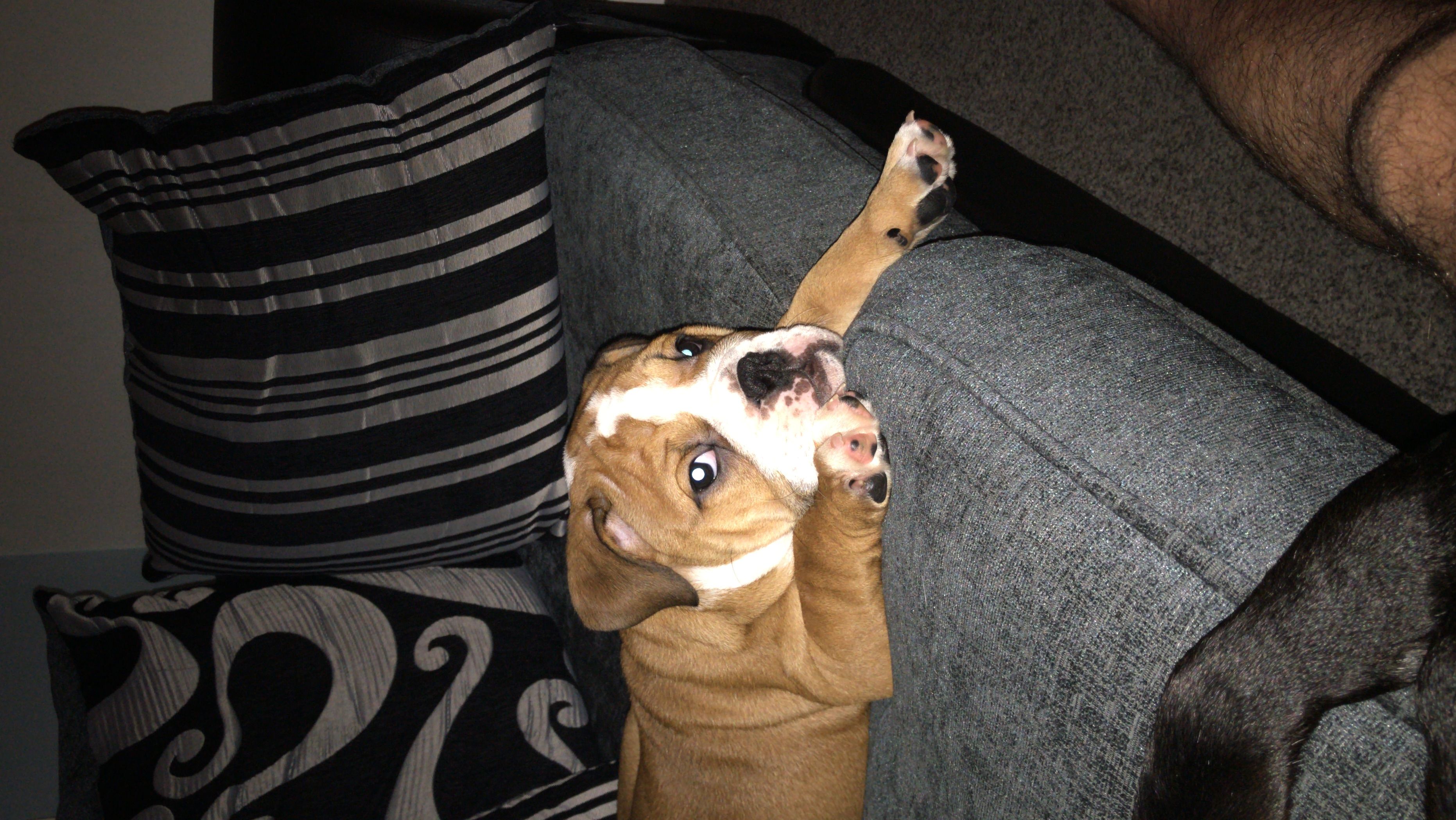 The little bugger has figured out how to climb on the sofa now so our other dog has no escape from him