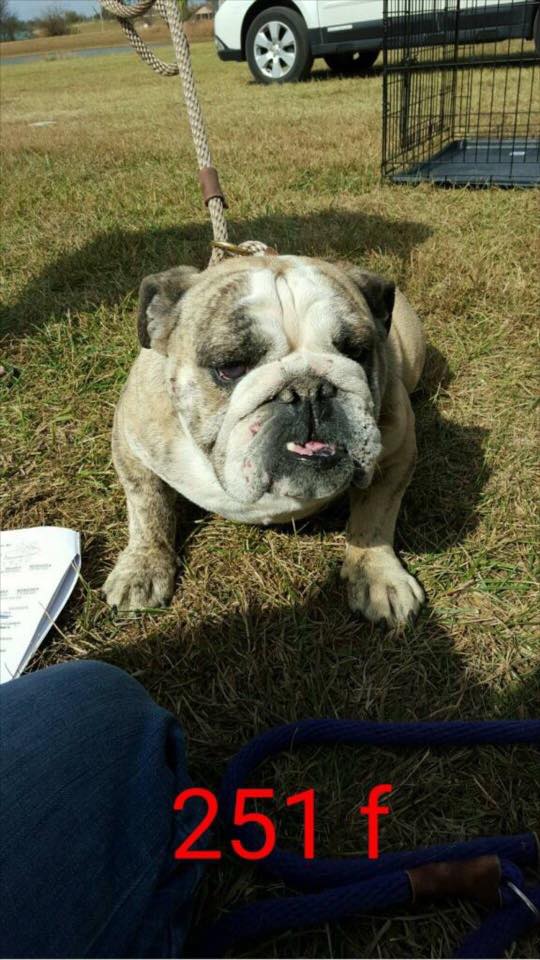 So, these are the first known pictures of her - they are from & during the auction that she was nabbed up by a rescue before another breeder could get her.
