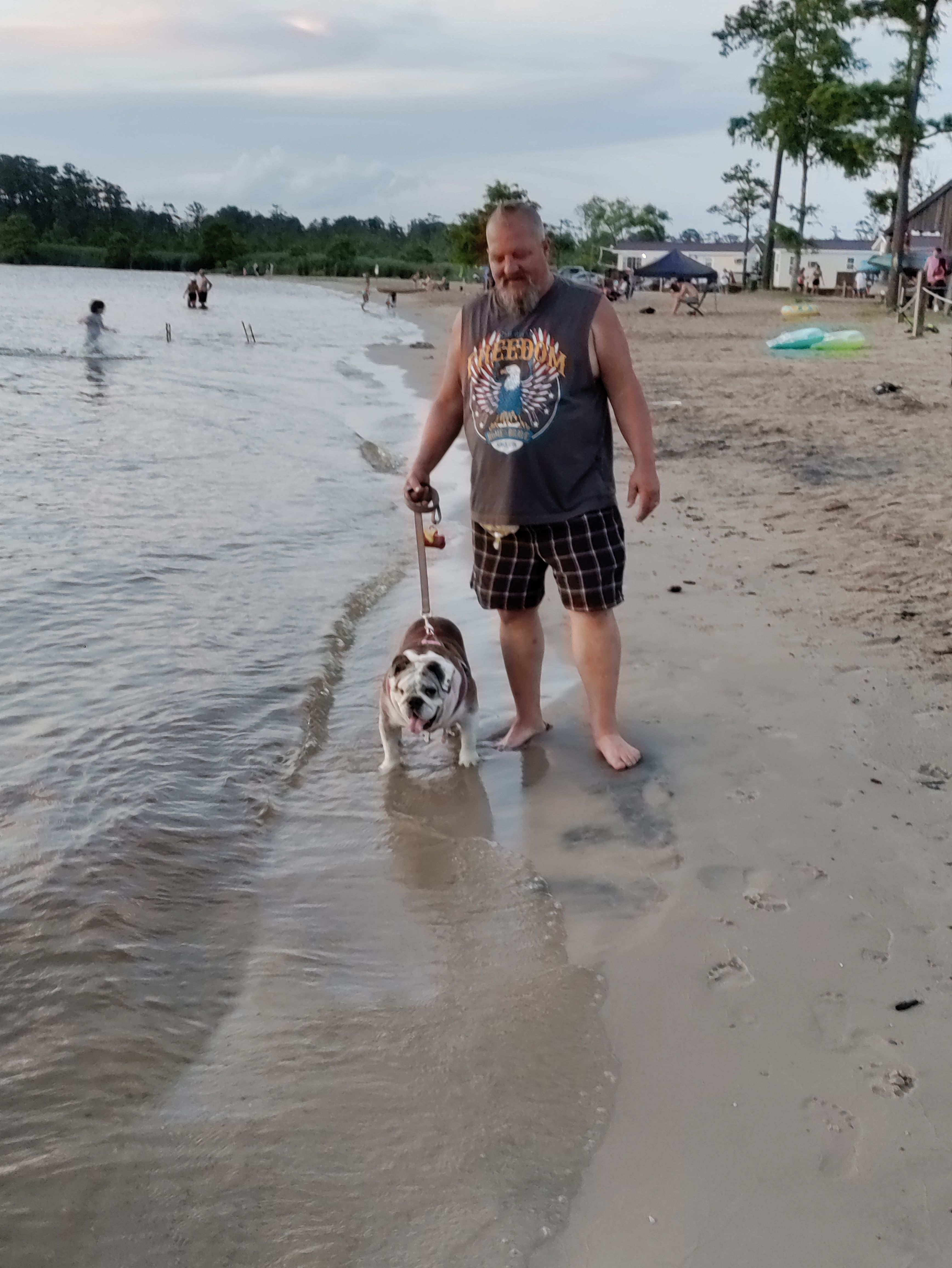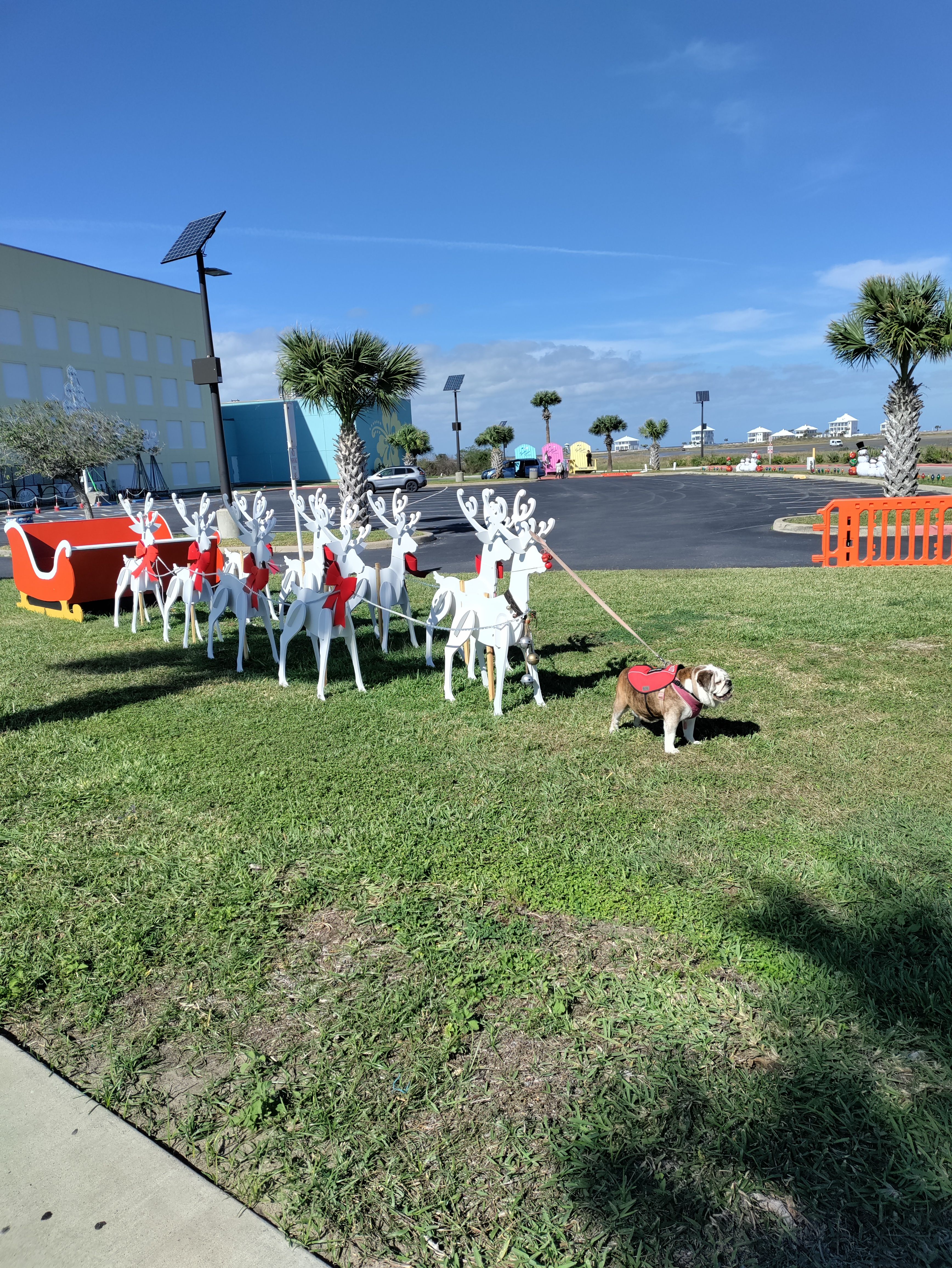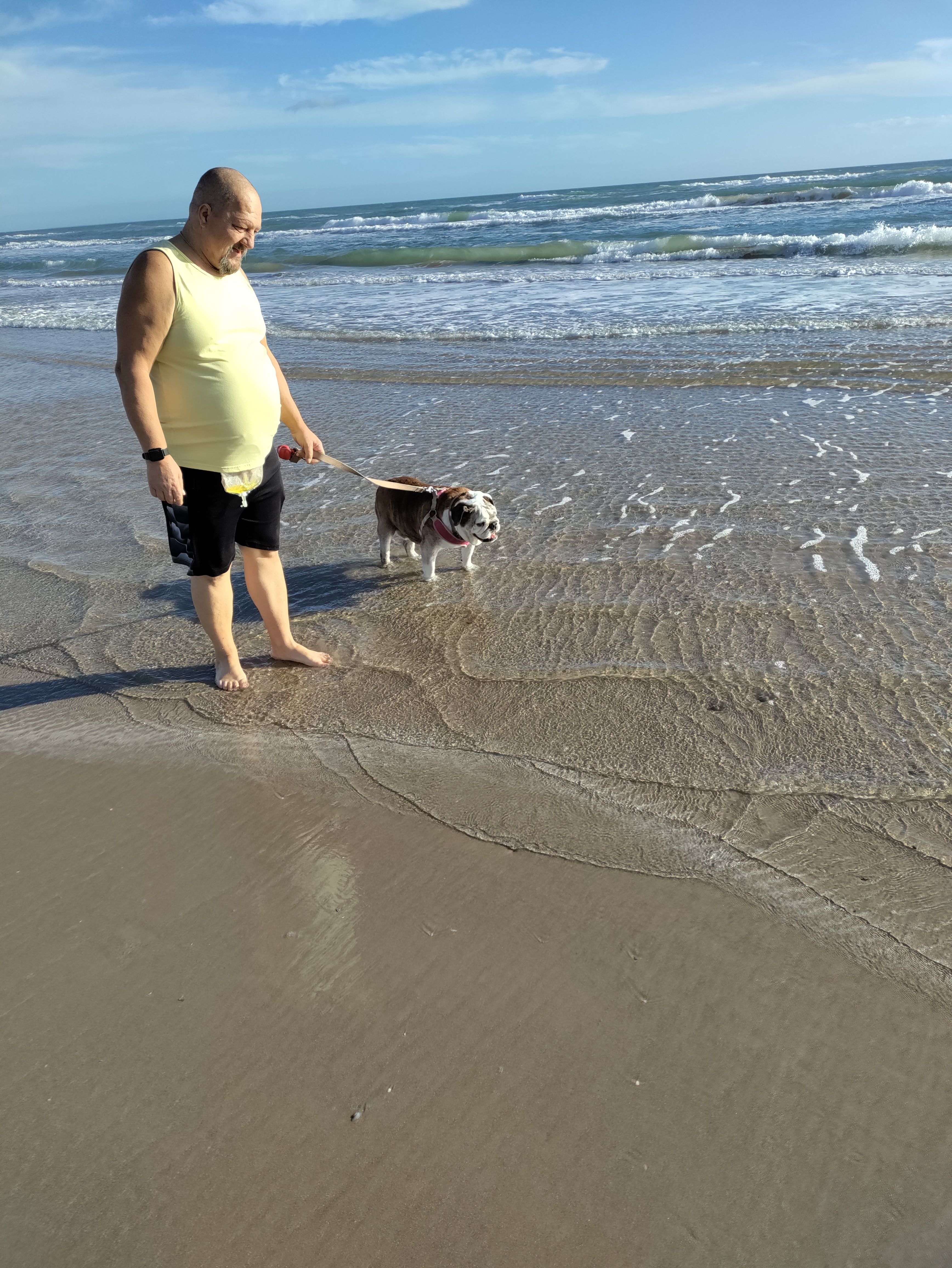 Our 14 1/2 year old English Bulldog Blossom loves the ocean. We live in a suburb of Cleveland, Ohio and since Blossom is a rescue dog, we have no idea of her past life before we fostered her and then adopted her 6 years ago. Shortly after our previous Bulldog passed away, a Bulldog rescue group asked us if we could foster an elderly Bulldog. We were told that she appears to have been used for breeding, has a few medical issues including cherry eye, cataracts & entropion in right eye. 3 different vets estimated her to be 8-9 years old. Our thoughts were to give this dog the best life possible because she probably didn't have much time left. We are avid campers and get to travel often. the first few campgrounds we visited had lakes, blossom liked to wade in the water about 3 - 6 inches deep. Our first trip to Myrtle Beach, blossom pulled me to the ocean, and walked the shoreline, she smiled when splashed by the waves. We have since been to many beaches along the east coast, from the Delaware beaches, Maryland beaches, Virginia beaches, N. Carolina beaches, S. Carolina beaches, Georgia beaches, & Florida beaches. Last month, Blossom wasn't doing well, she kept losing her balance, getting confused inside & outside our home, and losing control of her bladder inside the house (first time ever) Since we celebrated Christmas one week early with our kids & grandchildren, I told my wife that we should take Blossom someplace warm & get her to a beach. All the Florida campgrounds were booked, so I googled warm getaways for the holidays. South Padre Island, Texas came up and I started doing some research. Long story short, We booked a 5 day stay at the Ramada inn resort that was pet friendly for far less than the campgrounds there. Blossom had a blast, got to go to the ocean every day, perfect weather, high 70's - mid 80's. her hip & legs were no longer bothering her, it was a great get away.... If she can hold out a little longer, we will be heading to southern Florida in February.
