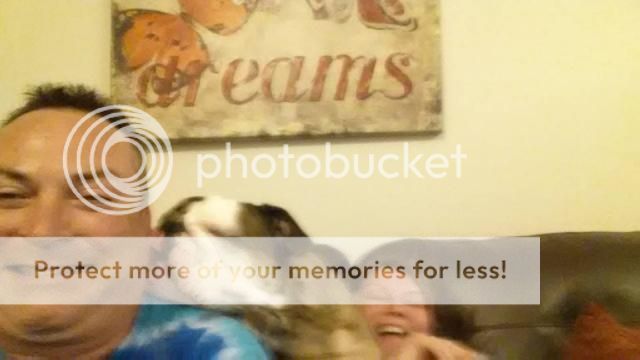 Joe called himself Java the Hut because of all his chins, but it's just the angle of the picture. I thought it was hilarious as you can tell I am LMBO!!!!! Vegas and I have another thing in common, we both ALWAYS have our eyes shut for photo's!!
