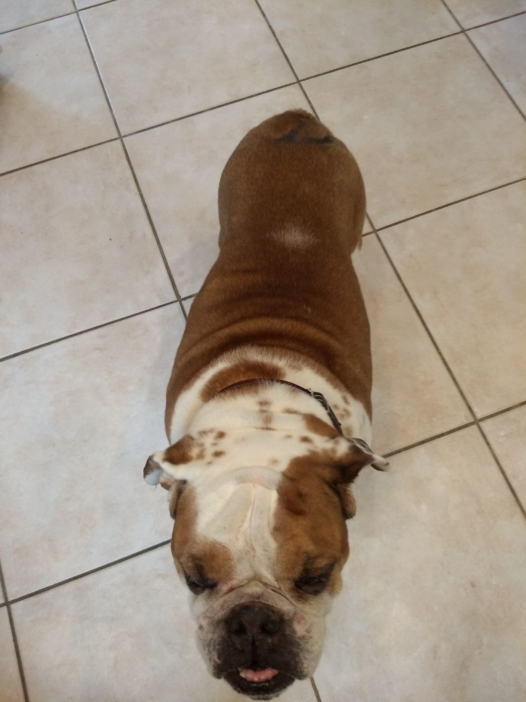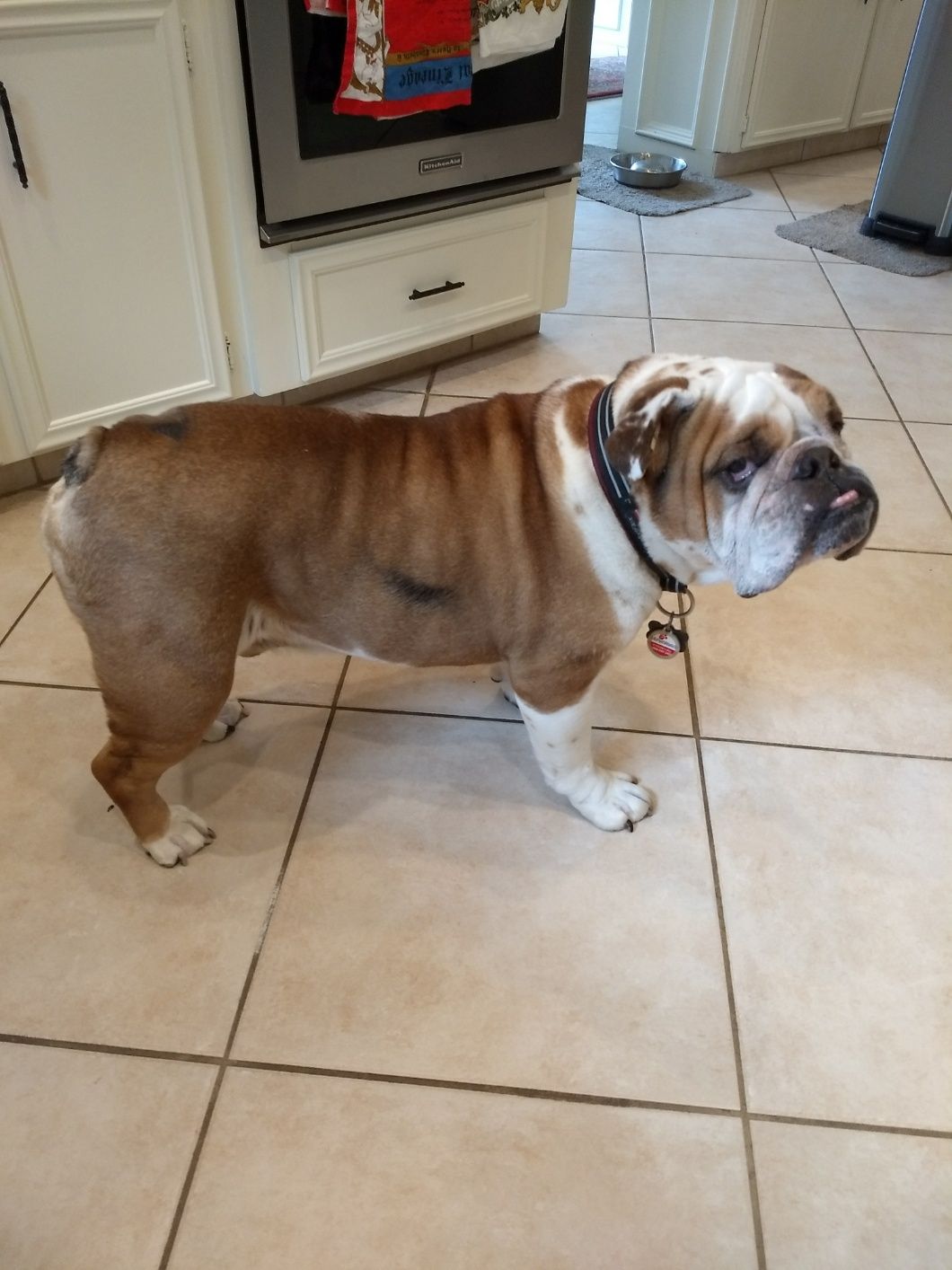 I have a 7 yr. old, female, spayed, EB and her Vet says she is 10 lbs. overweight. She is on Blue Buffalo weight management dry food. She gets 2 cups a day along with a can of green beans, (1/2 in the morning and 1/2 at night). When she first started on the Weight Management lost a couple of pounds but gained it back.