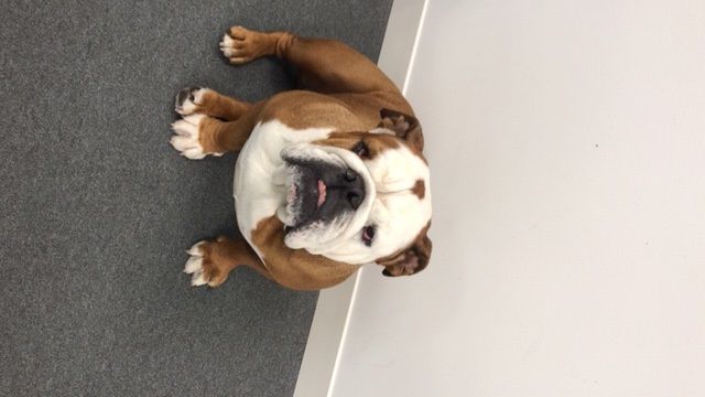 Here a little photo of her looking less than impressed when it was take your dog to work day!