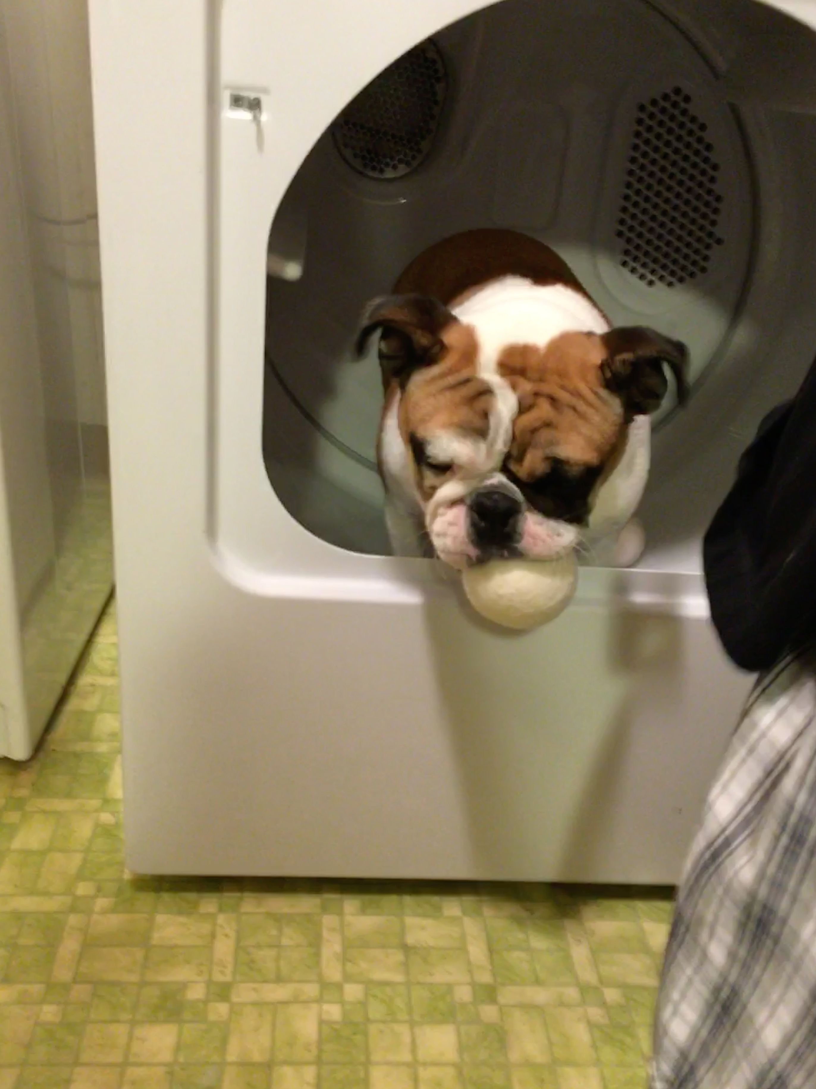 that photo!! Silly LoveBug!omg!!!!!! that is so funny!!!! My Hank runs so fast when he hears me open my dryer so i hopfully drop one of the dryer balls!!!! FANATICAL over his desire for them! this is soooooooooo fitting !![]()