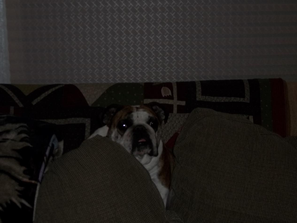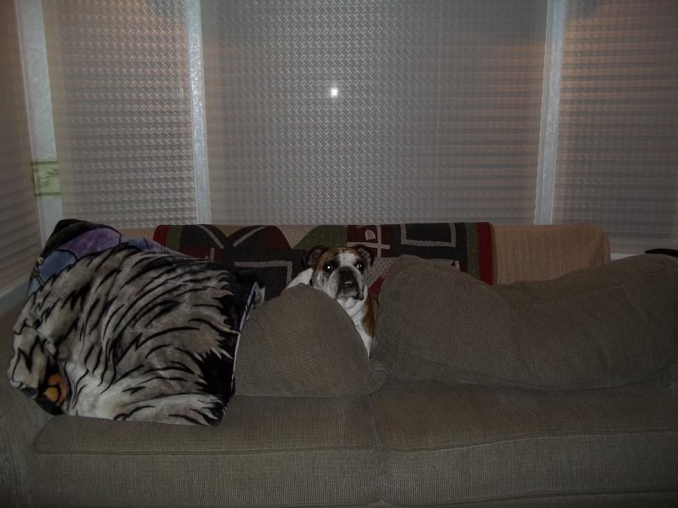 we went to stay with my parents in the RV, they go to the World of Outlaw Races every year so took a few days to kick back and visit. My parents are always taking their dogs on potty walks so of course we joined them .... the last walk of the night I grabbed the leashes and Molly jumped up on the sofa and tried to hide ... think she was saying enough of those blasted walks!!!