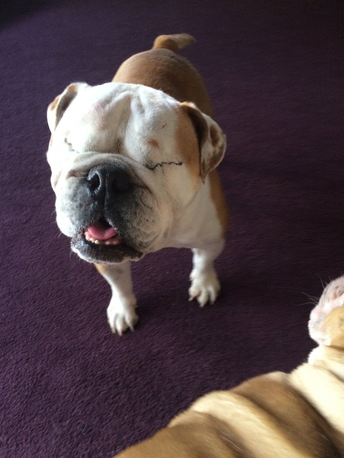 Even tough she doesn't have eyes to reflect her emotions with you can actually see she's happy. Bulldog body language is the best<3 Love you guys for giving Elsa such an awesome home<3The King found his Princess and they love each other very much, I never knew having two could bring such happiness and straight out joy to a life but pictures are worth a thousand words.
