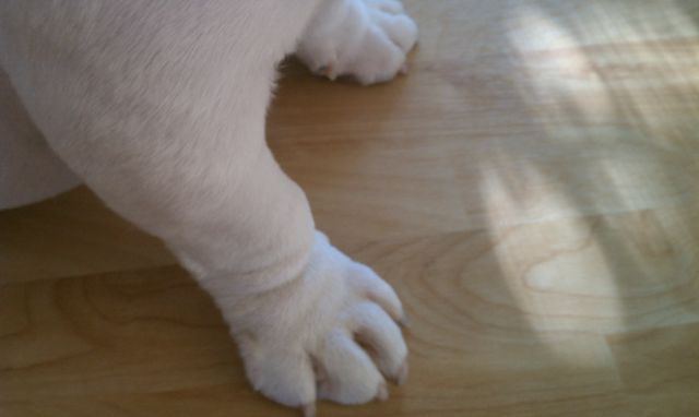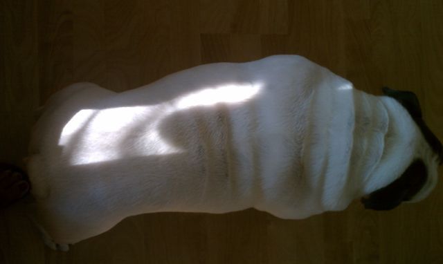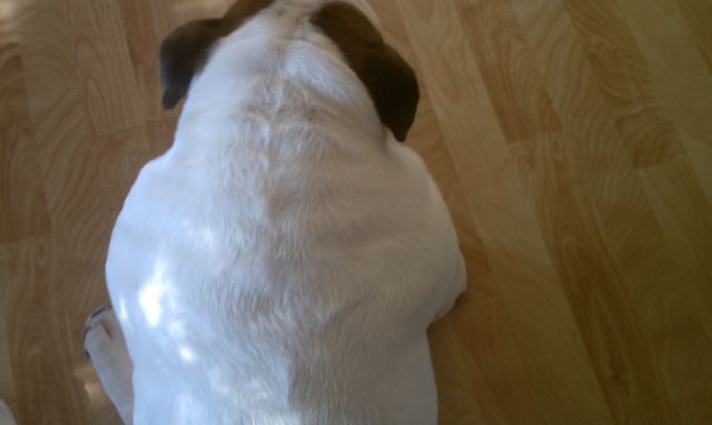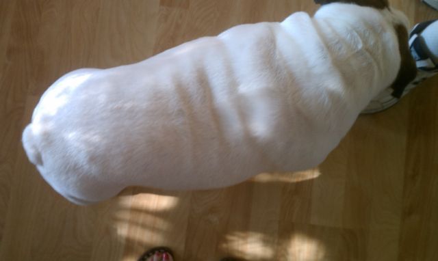 As you can see she does have wide shoulders and short legs and beefy paws. Lot's of wrinkled skin on her back. She looks like a big stuffed toy when you see her up close