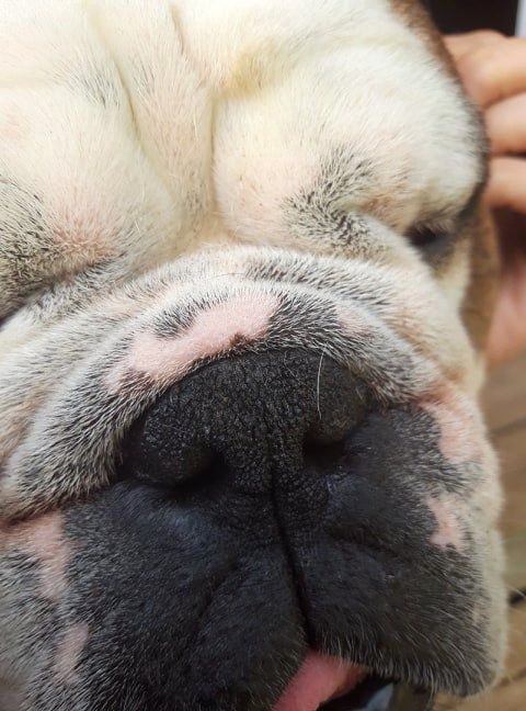 Btw, the top of his nose is really dry. He doesn't seem to be bothered by it and I hesitate to put something on his nose in case he would inhale it. Any advice?
