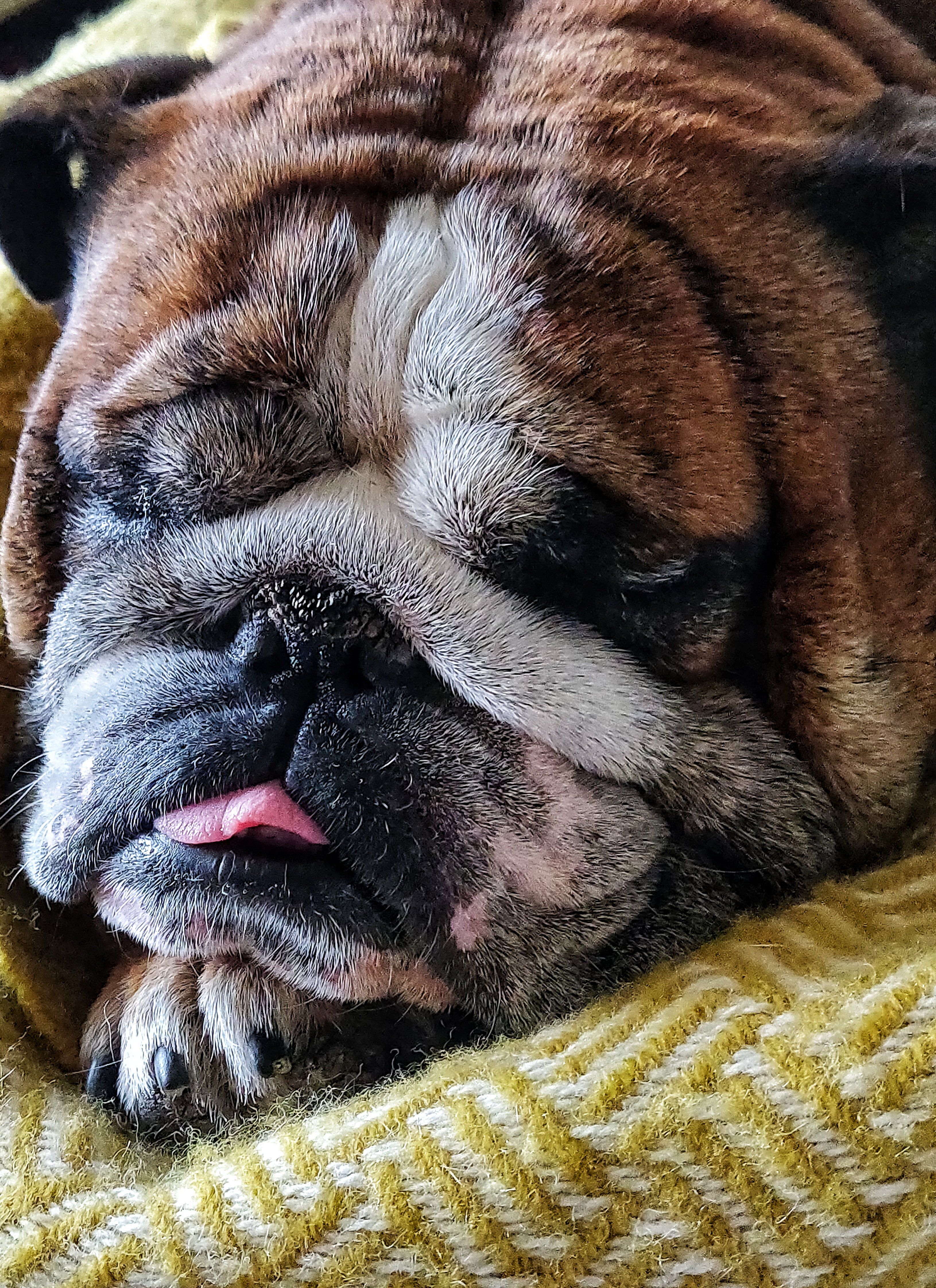 Cool here today and raining so Castor decided to borrow my blanket for his afternoon nap on the couch.