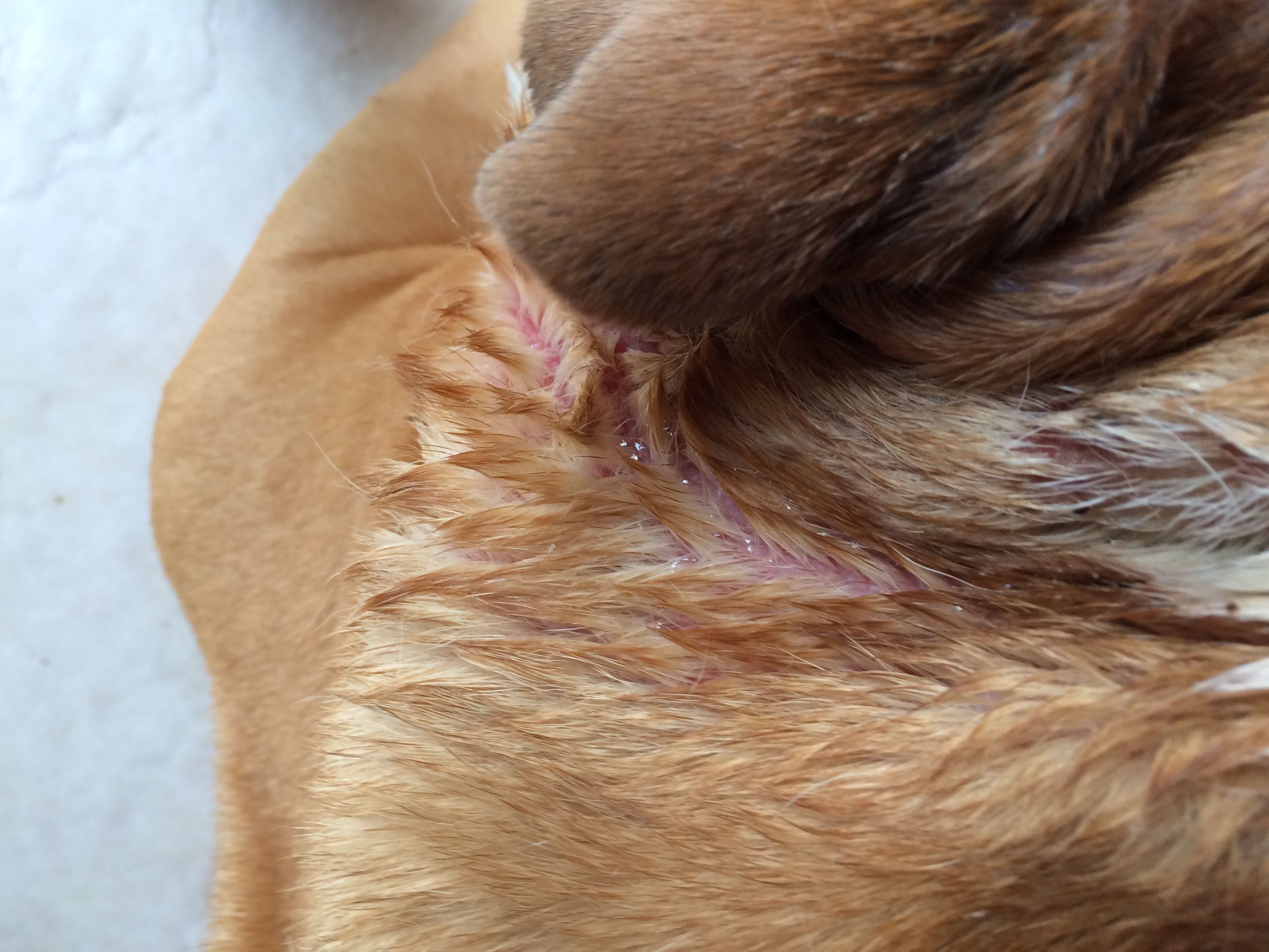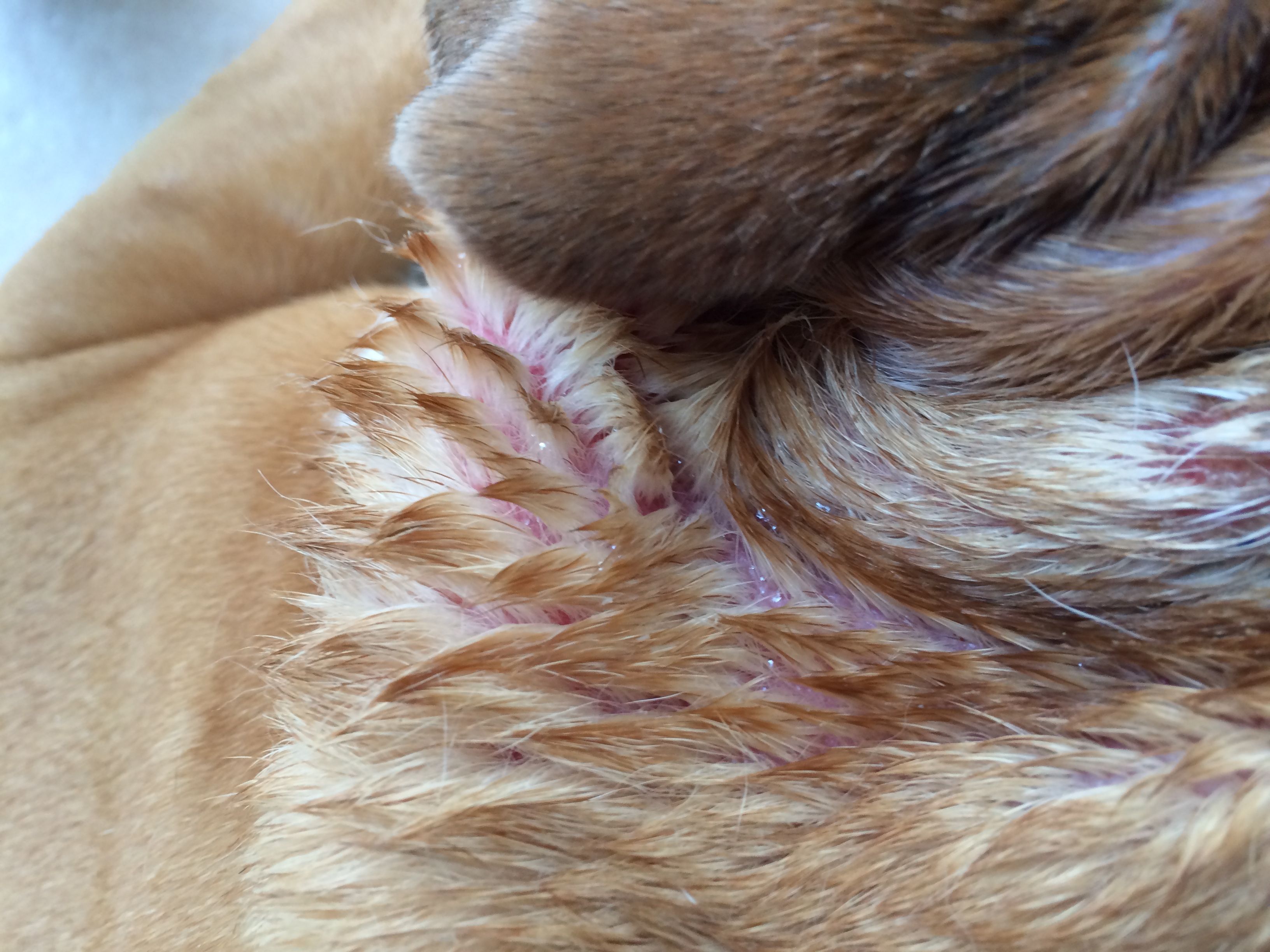 My english bulldog is developing some type of rash, I think it might be food allergy someone accidentally fed some salmon food from walmart so I was thinking it might be that.
