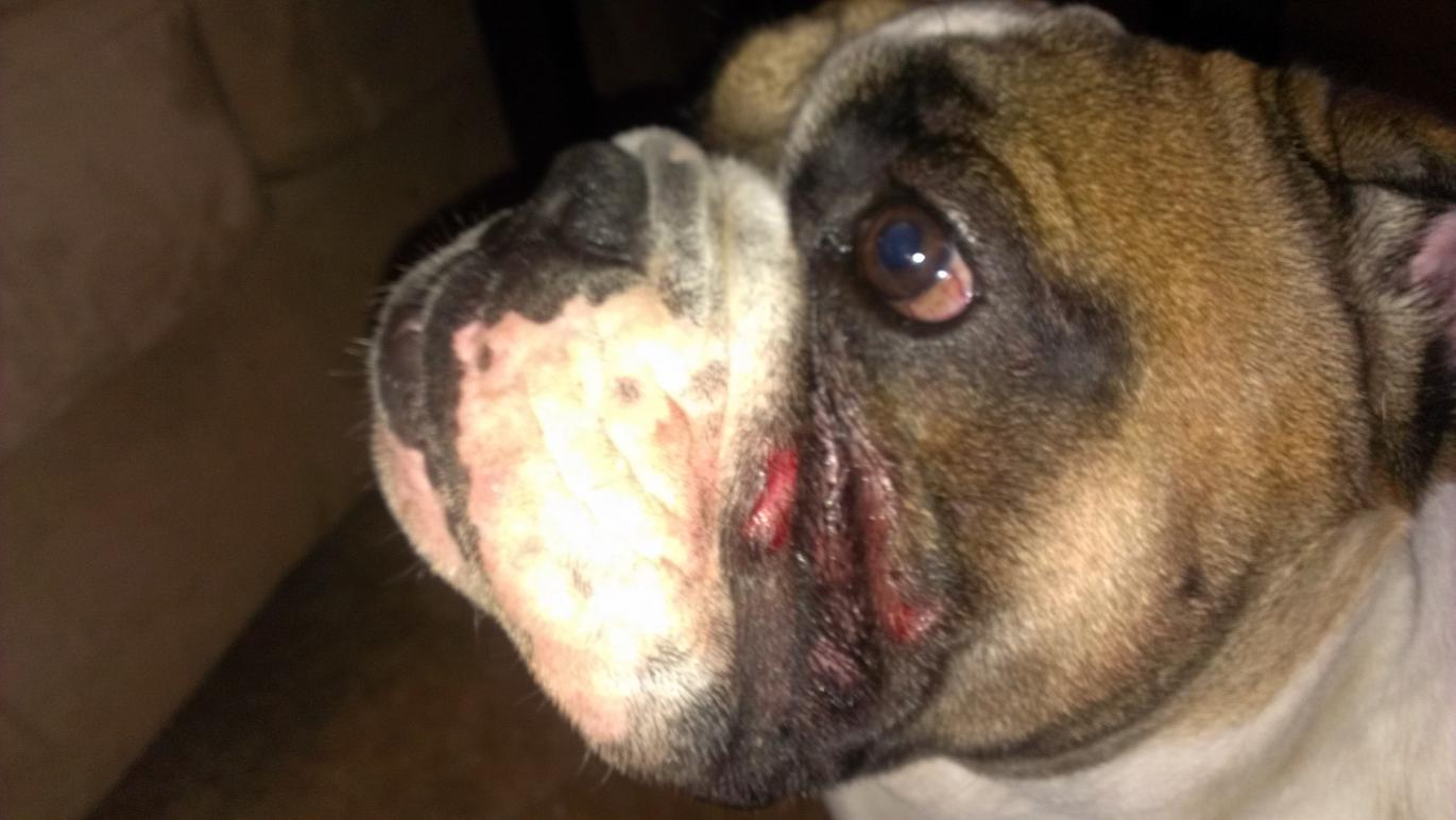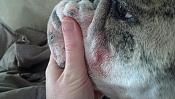 Poor baby, looks like it's pretty sore. I wonder if he is allergic to something in the home, or outside. Our two bullies get allergies pretty bad sometimes and itch and scratch. If ever the skin has broken, we've got a Betagen spray that the vet had prescribed and it clears it up well. A friend recommended Corona Lanolin Rich Ointment for little cuts, or even neosporin. I sure hope that it clears up for your dozer soon !
