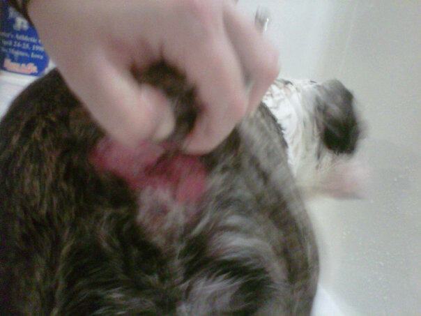 Ok So tonight I gave Cooper a bath he had one about 10 days ago but he needed one bad and I held off as long as I could. So I was scrubbing him and then went to his bum and noticed his bum hole was very swollen. I thought at first he had a tumor or a hemroid but then I looked under his tail and it was so red and he had lost hair under there. I feel so so bad. He hasn't been doing anything that would hint his bum was hurting. He doesn't have a tail pocket but I do clean under his tail here and there with a wipe cause it gets a little dirty. I have been doing my normal maintenance that I do with him and I want to show everyone how fast things can come with bullies. His bum was fine 10 days ago at that bath and now it is so red. I feel like such a bad mommy. I was going to not do his anal glands cuz I know it is sore he sits down when I touch it and will naw at his paw...... I then thought well I will try to do the glands if he seems like it hurt I will stop. He let me do them and it was the most I have ever gotten out of them. I just did them at his last bath too.....I dunno if this is yeast infection. It did feel slimy under his tail and I was trying to smell but I had soap on him already I couldn't smell anything. Or is it anal glands leaking and causing an infection..... Please give me your input!! I have witch hazel and malacetic ultra I can use if you all think that will help.....