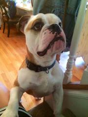 Remington is a 14 month old, very high energy, big puppy of a bulldog! He is a happy, outgoing, rambunctious guy that loves walks, car rides and chasing tennis balls at the park.